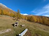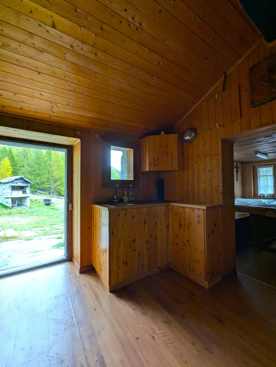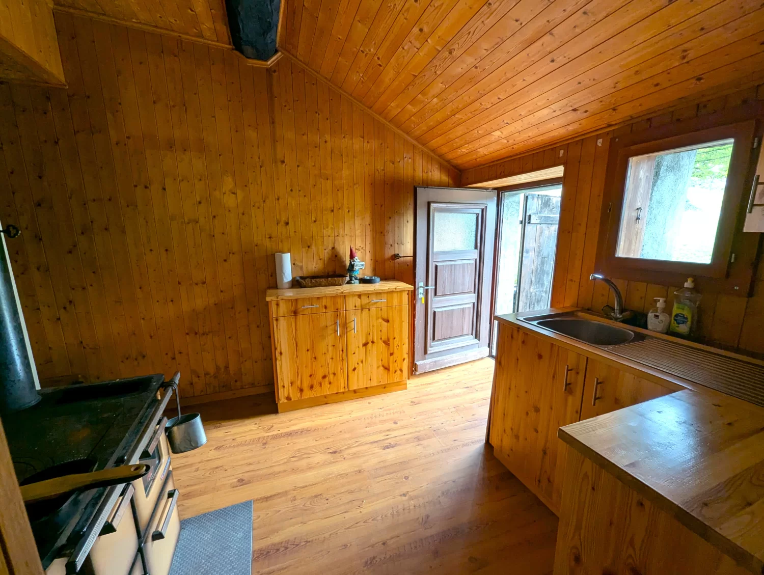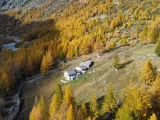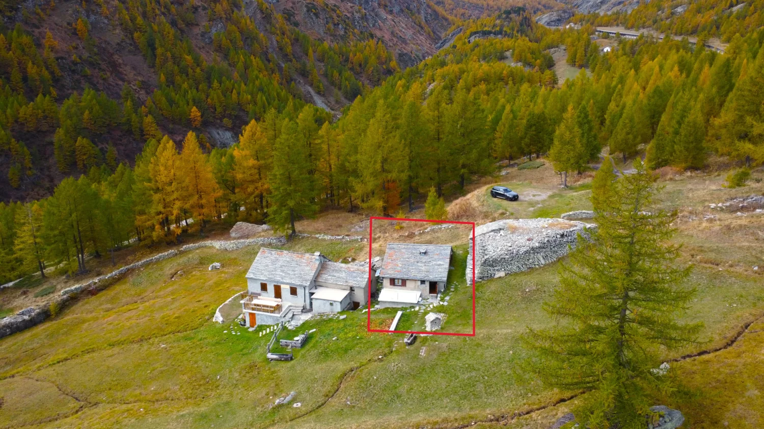 Eingebettet in einem idyllischen Lärchenwald und umgeben von unberührter Natur, liegt diese zweigeschossige, beinahe einzigartige Berghütte mit rund 50 m² Wohnfläche auf einem grosszügigen Grundstück von über 36'000 m².