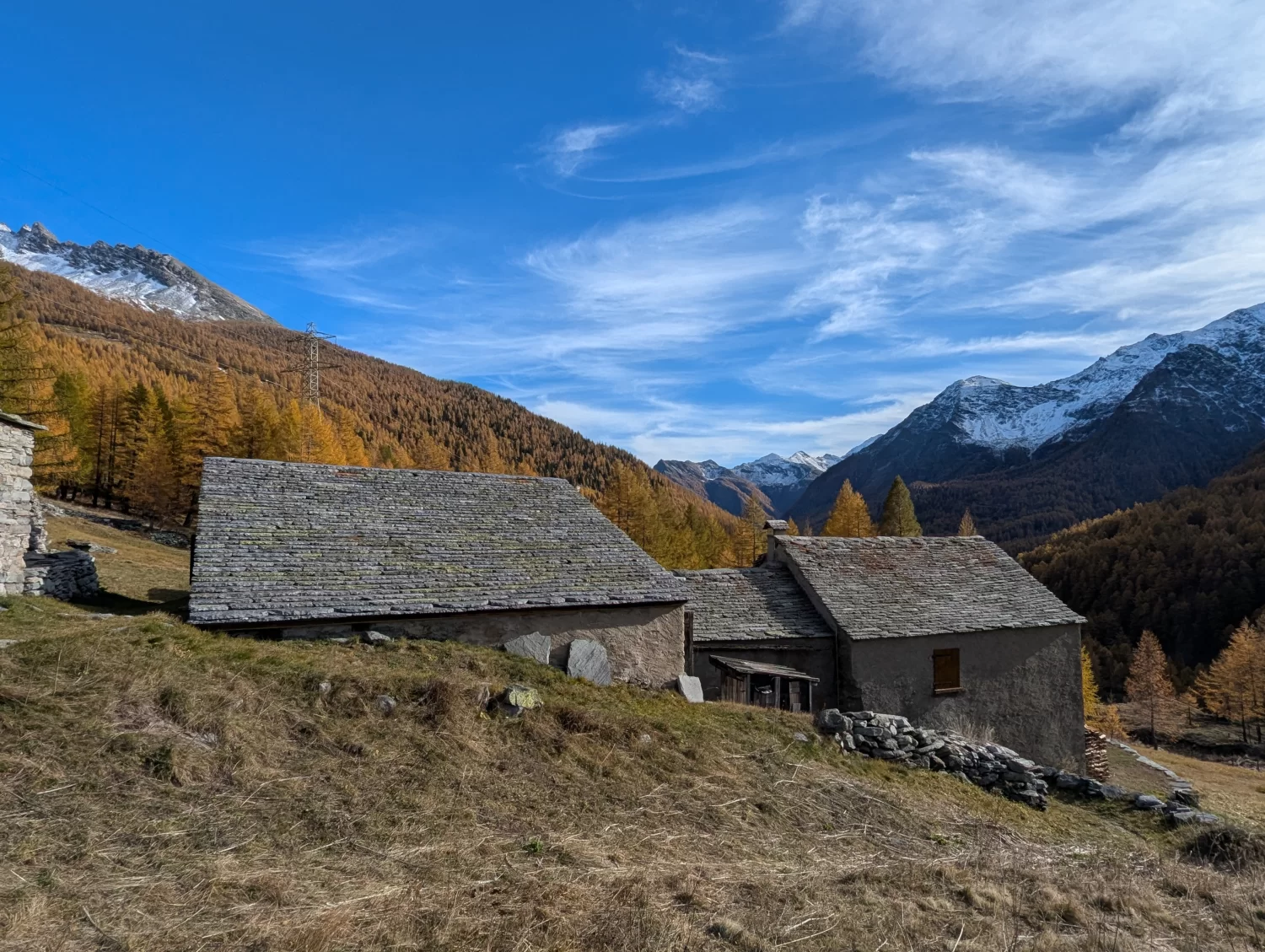 Alphütte umgeben von Lärchenwald im Simplongebiet