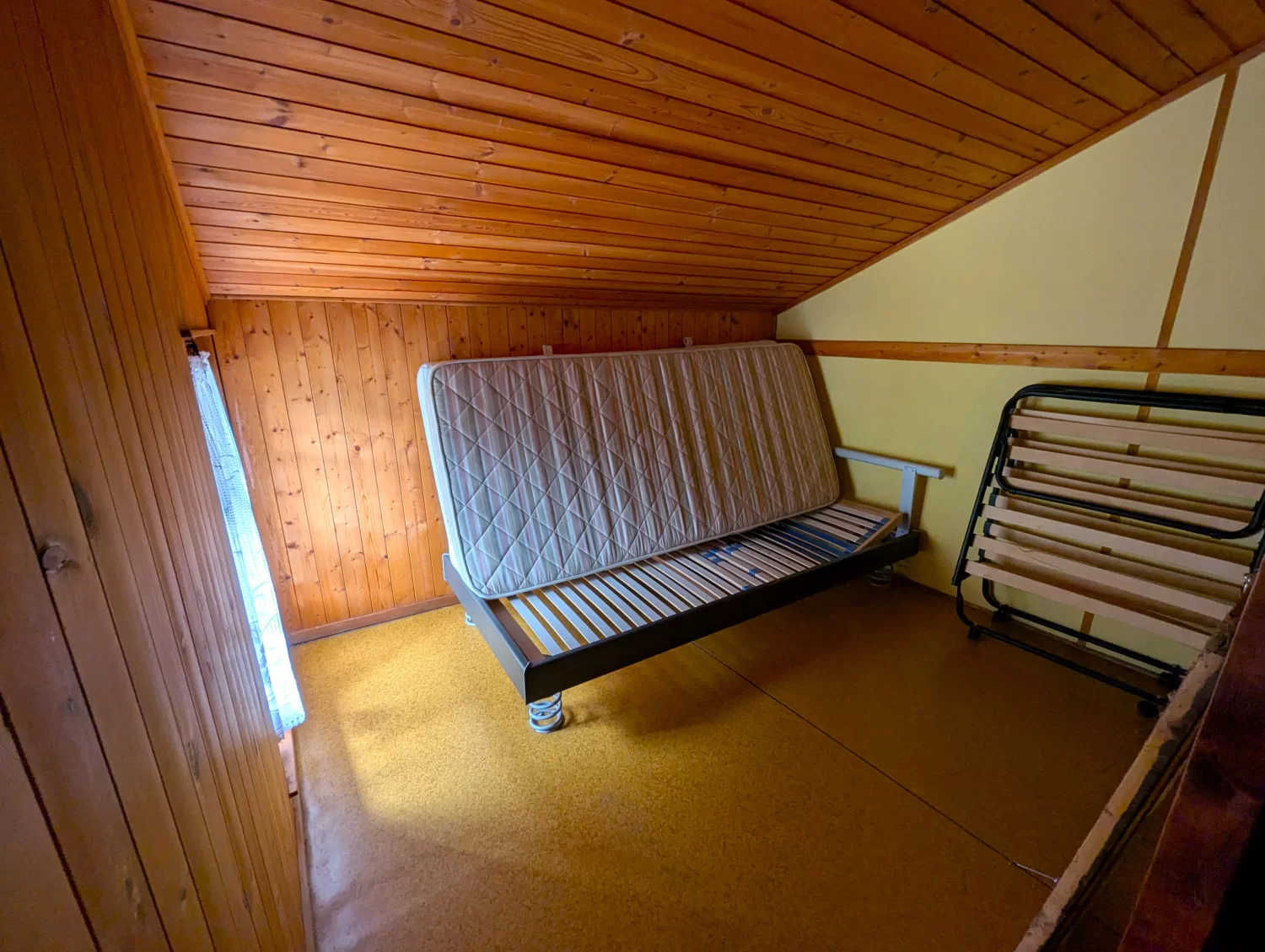Im Untergeschoss, welches nur von aussen zugänglich ist, befindet sich der Sanitärbereich mit Dusche, WC und Lavabo. Das Warmwasser wird über einen Gas-Durchlauferhitzer erzeugt. Auf derselben Ebene stehen zudem zwei Kellerräume zur Verfügung – ideal für Vorräte, Werkzeuge oder Feuerholz. Durch den grösseren Kellerraum fliesst seit ca. 150 Jahren unterirdisch natürliches Quellwasser, was diesem Raum eine konstante Feuchtigkeit verleiht.