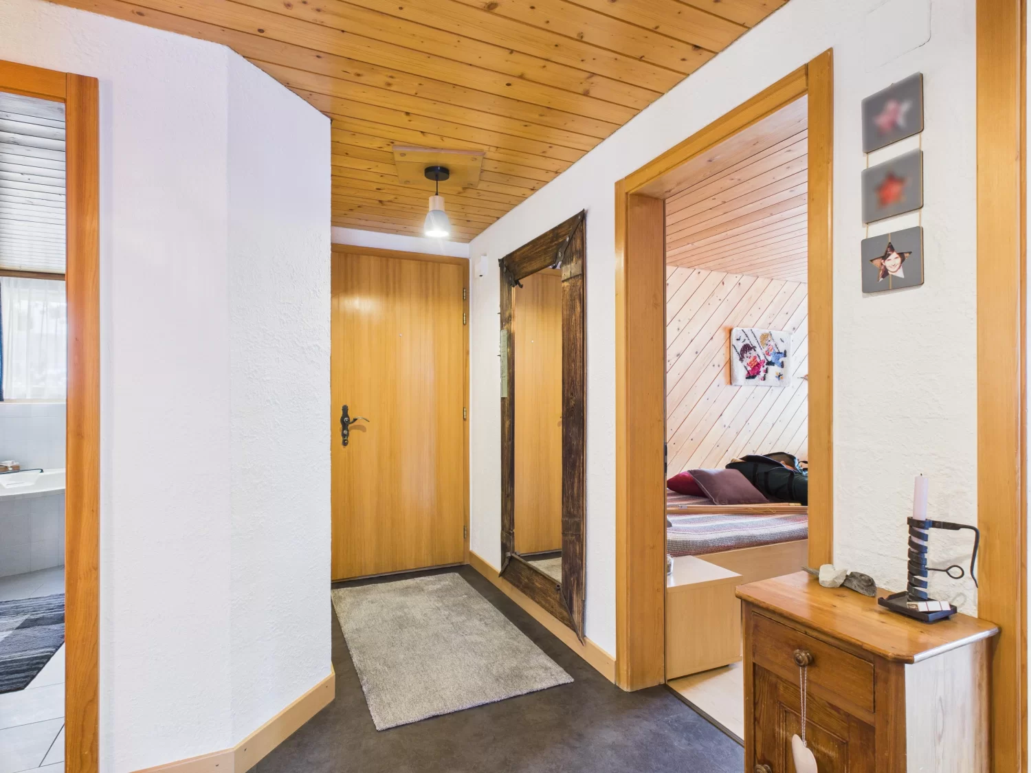 Vom einladenden Entrée aus gelangen Sie in die drei gut geschnittenen Schlafzimmer, in den lichtdurchfluteten Wohnbereich sowie in das stilvoll ausgestattete Badezimmer mit Badewanne, Dusche, Doppellavabo und WC.