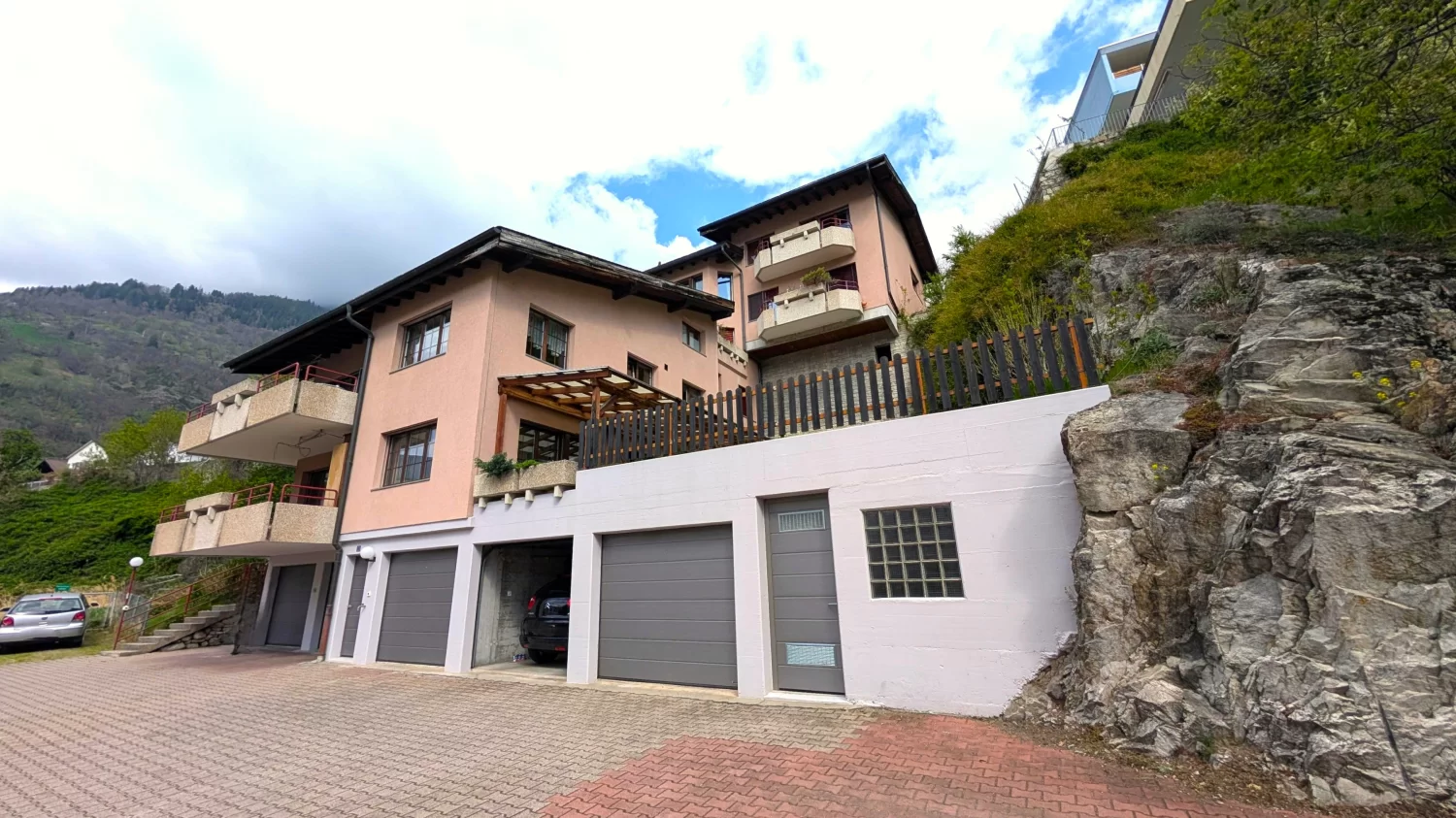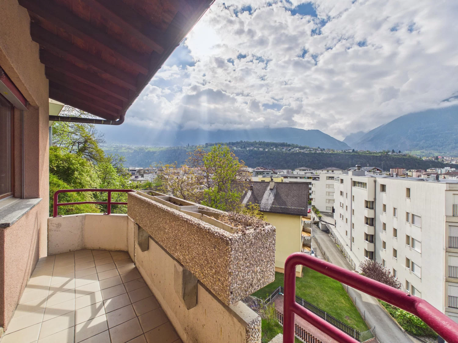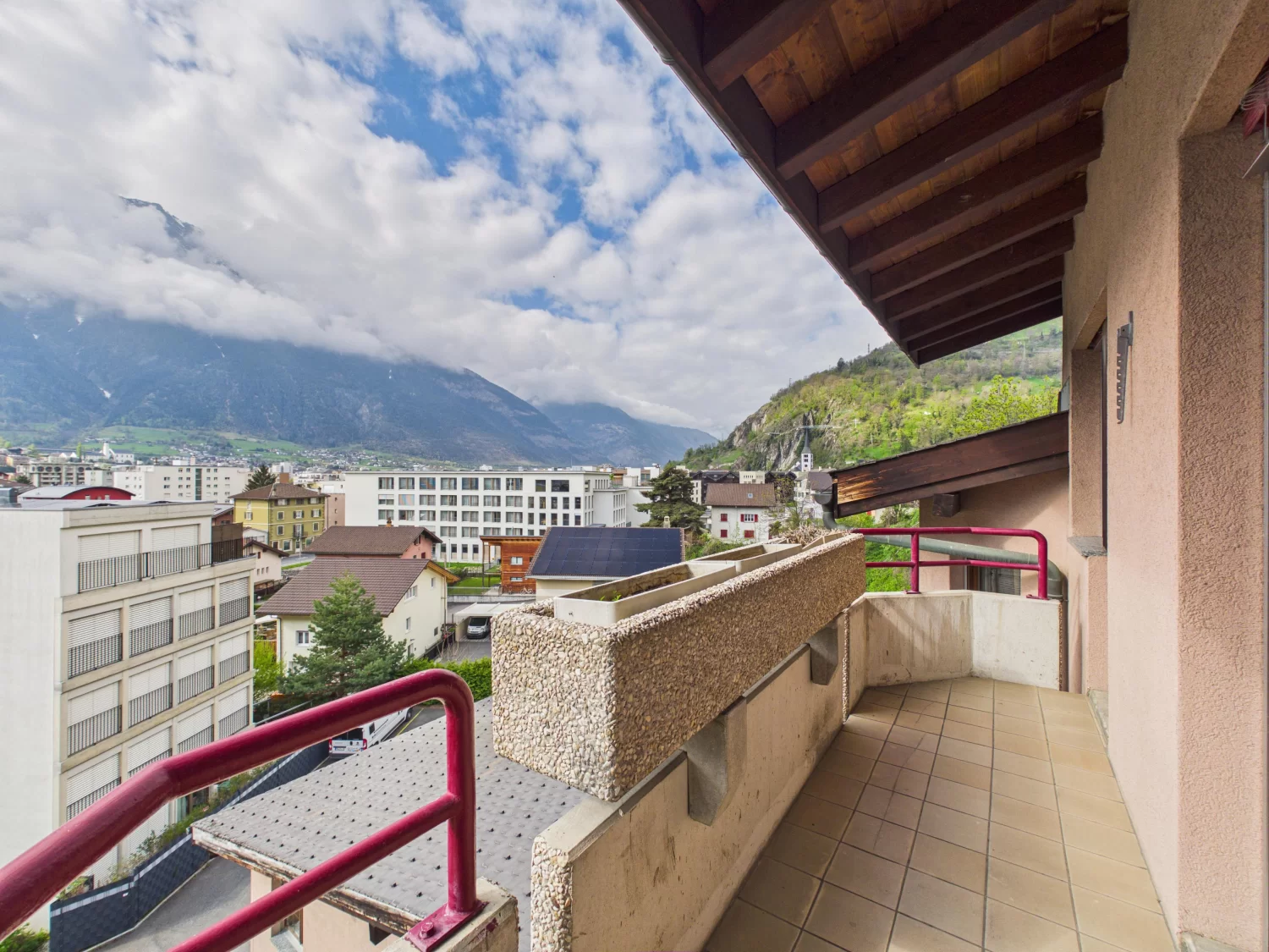 In einer begehrten, besonders sonnigen und ruhigen Wohnlage an der Landstrasse in Naters steht das 1986 erbaute Mehrfamilienhaus, in dem sich die grossräumige 5.5-Zimmer-Dachwohnung befindet.