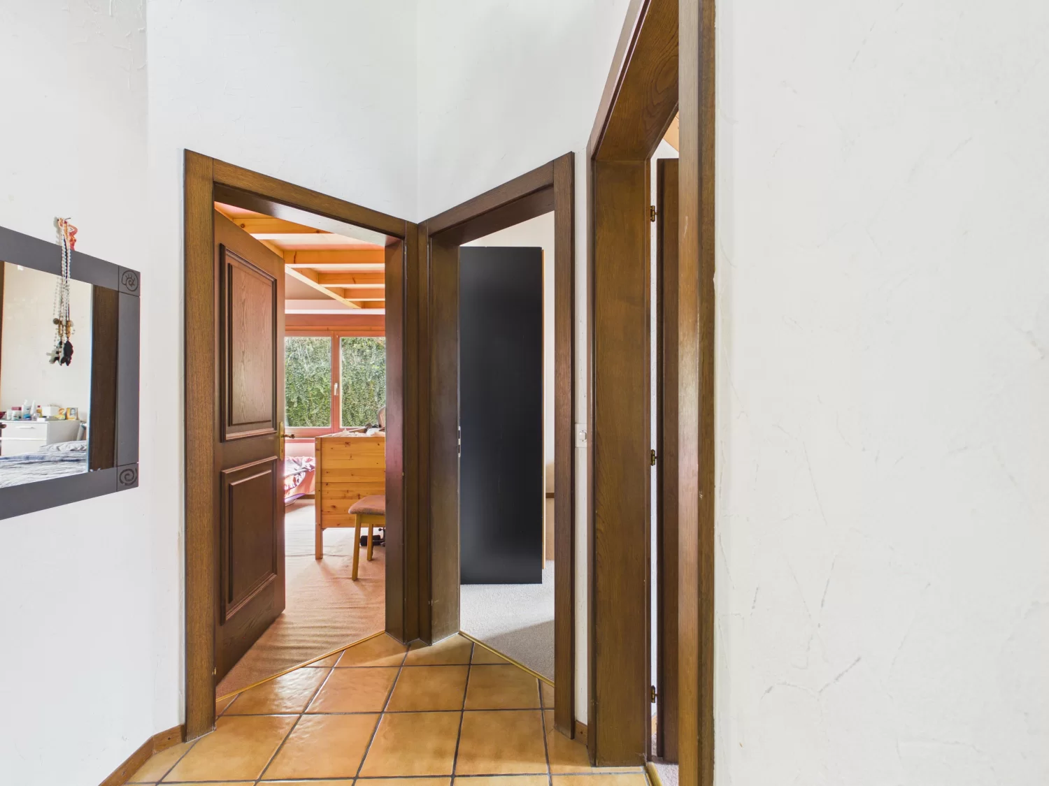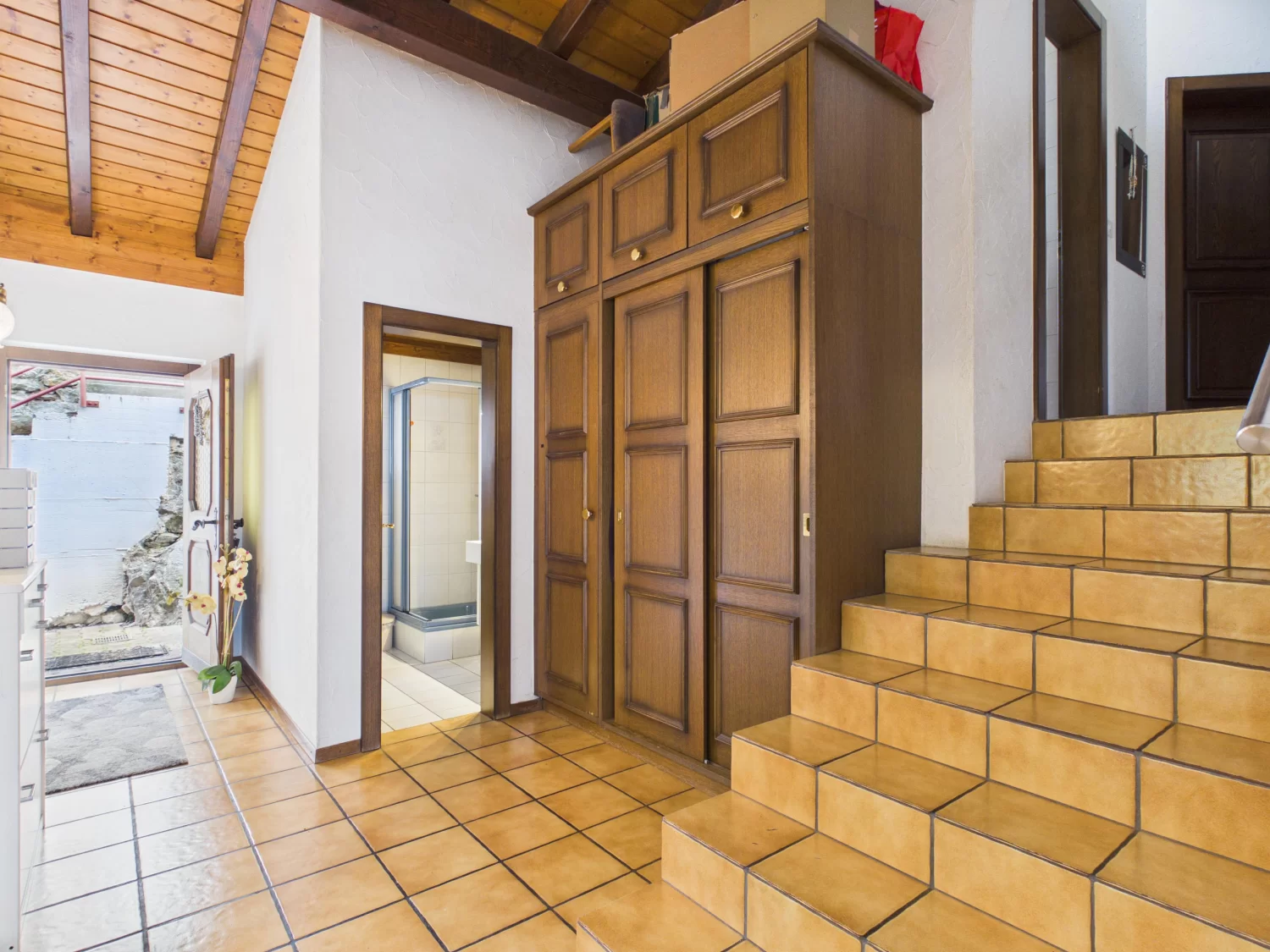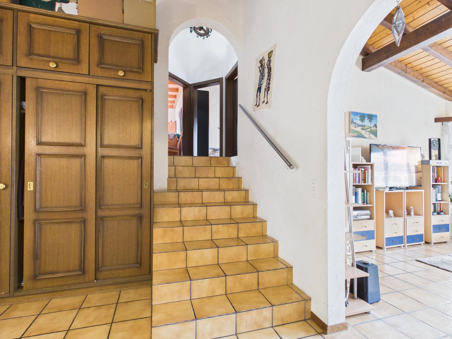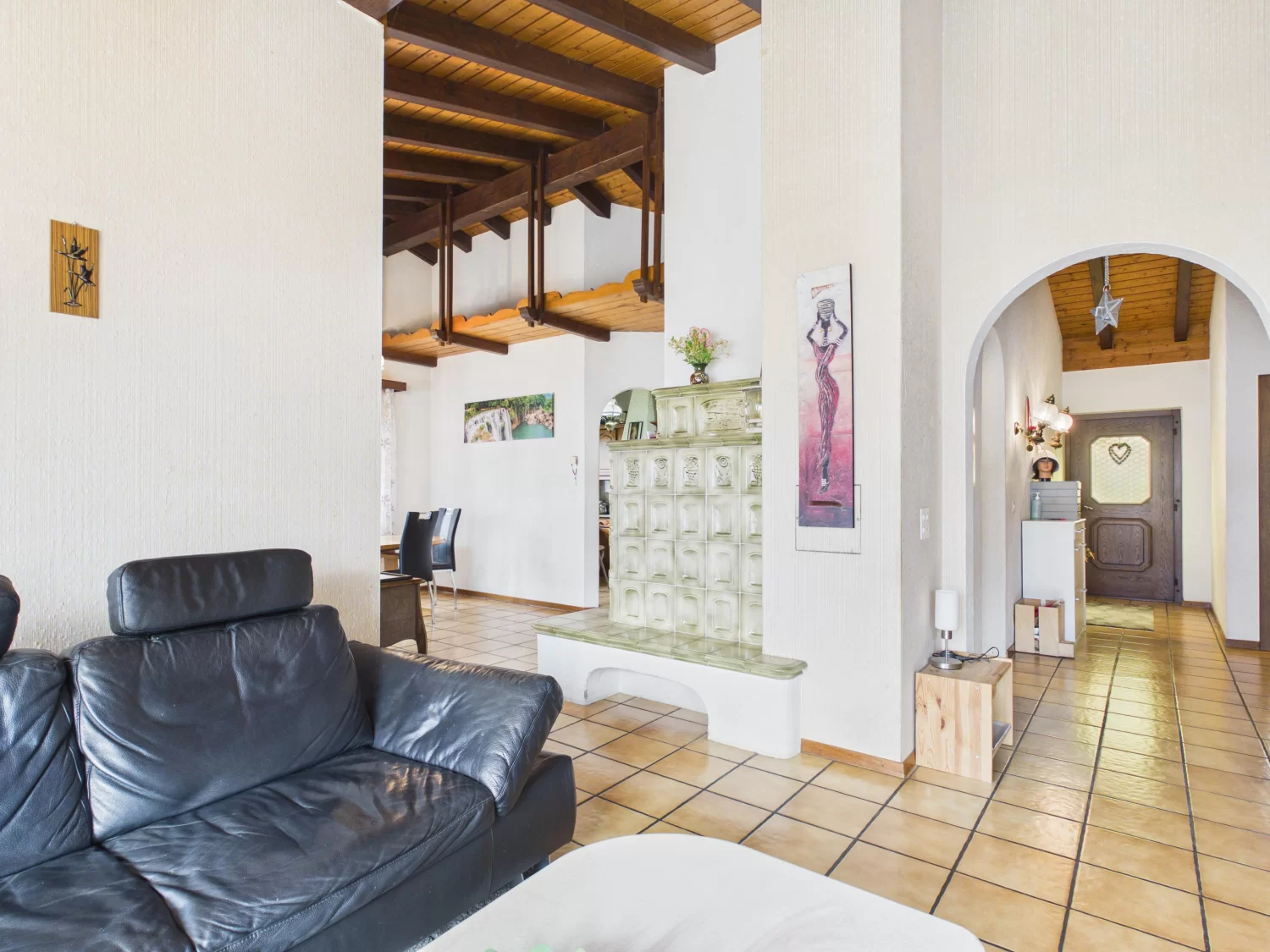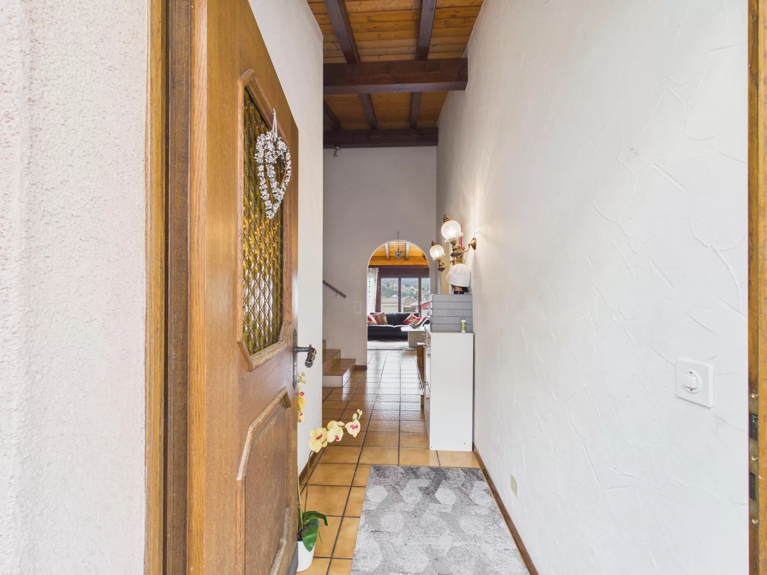 Die Ausstattung ist funktional und bietet gleichzeitig attraktives Potenzial zur individuellen Modernisierung. Pflegeleichte Steinzeugplatten prägen den Wohn-, Ess- und Küchenbereich sowie die Treppe, während die Schlafzimmer mit Teppich ausgelegt sind – bereit, ganz nach Ihrem persönlichen Stil neu interpretiert zu werden.