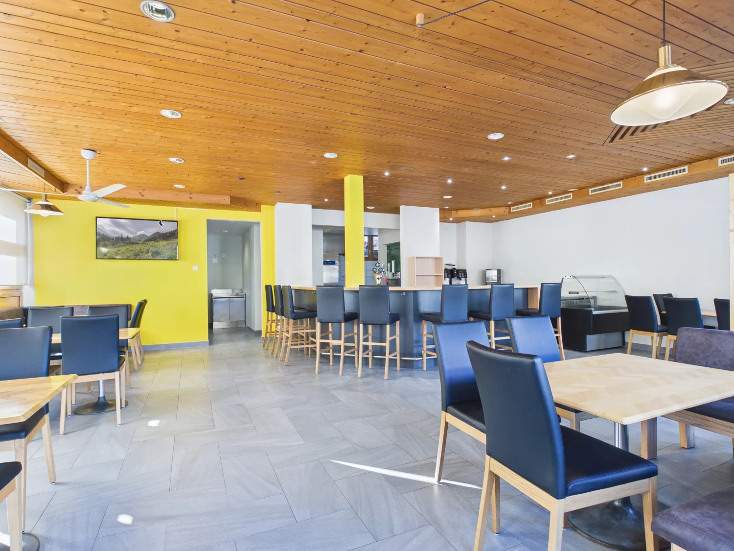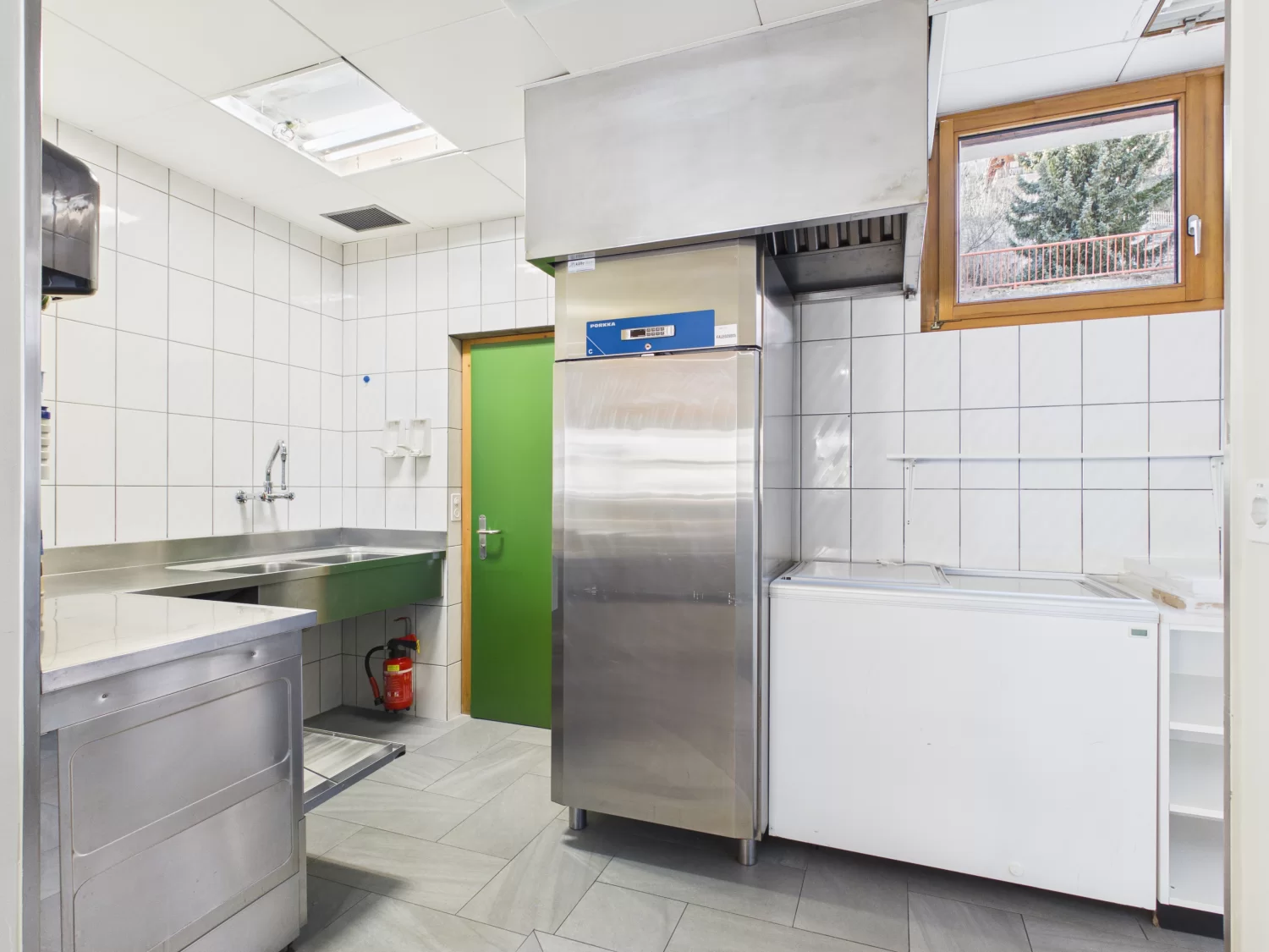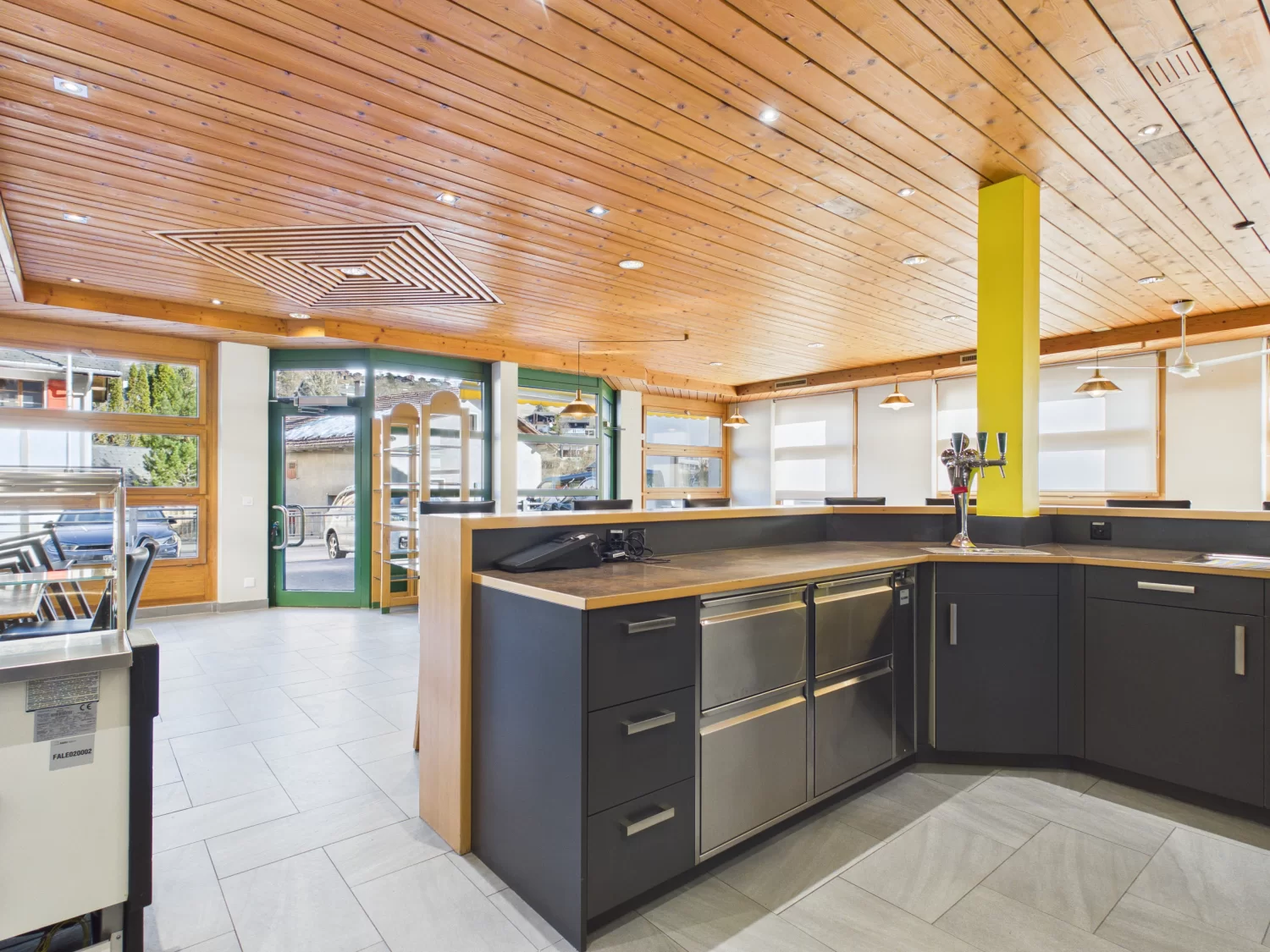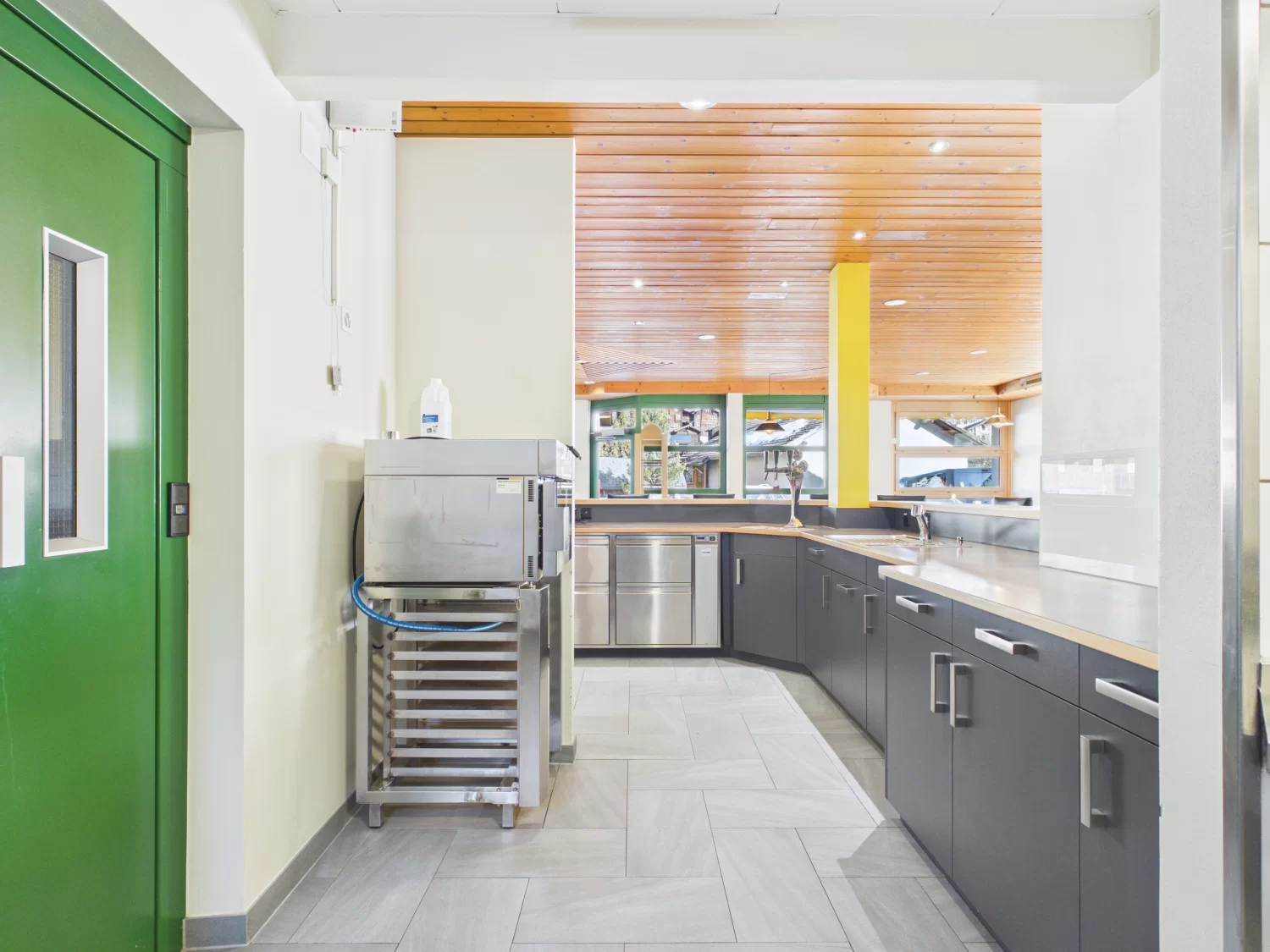 Die Gastronomiefläche ist sowohl über eine Treppe als auch bequem per Lift mit den Lager- und Produktionsräumen verbunden, was die Bewirtschaftung äusserst effizient gestaltet.