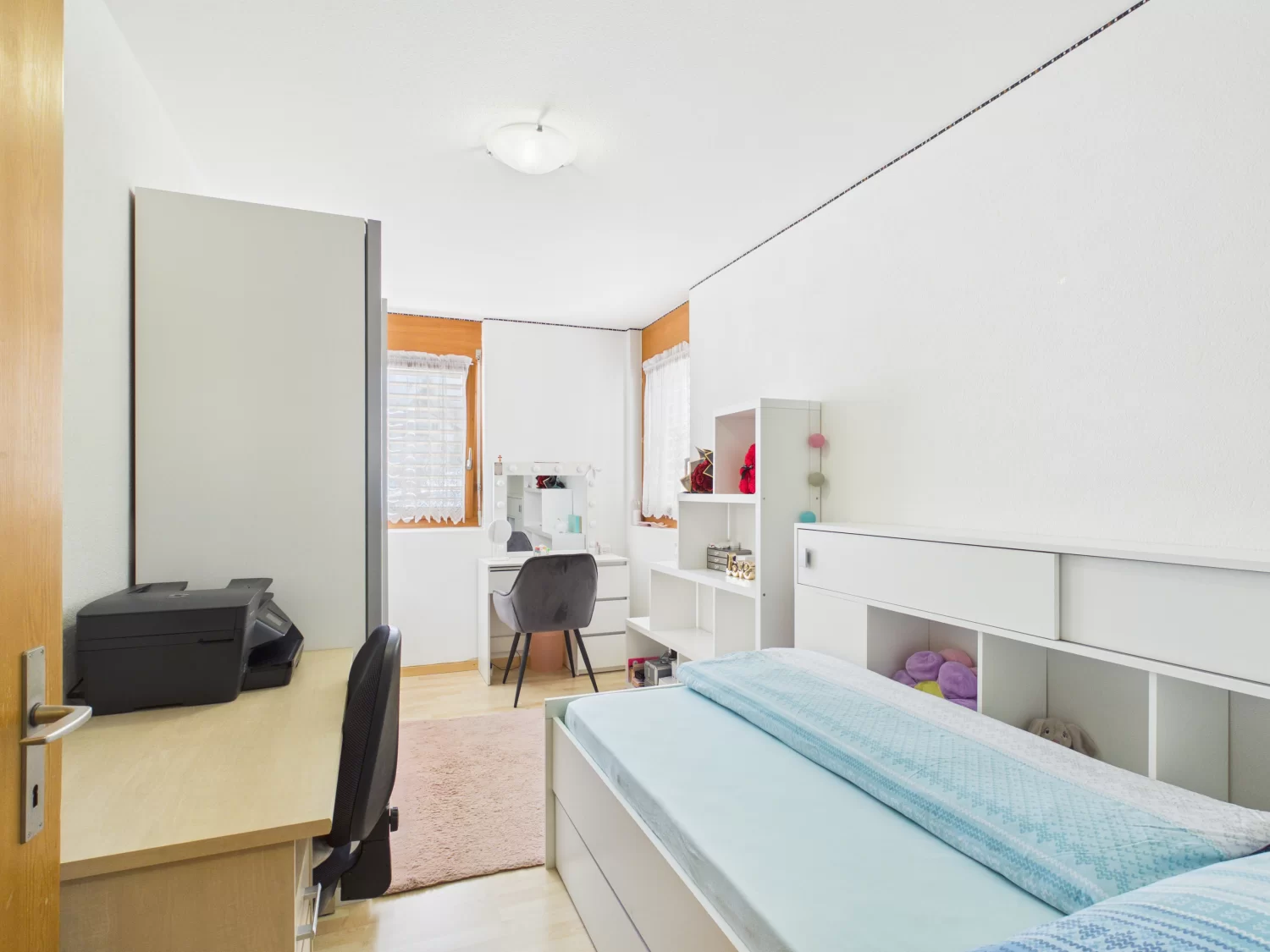 Direkt darüber befinden sich die beiden identisch geschnittenen 4.5-Zimmer-Wohnungen, die durch ein durchdachtes Raumkonzept überzeugen. Jede Einheit bietet drei helle Schlafzimmer. Zwei separate Badezimmer sorgen für maximalen Komfort und verhindern den morgendlichen Stau im Bad. Das Herzstück beider Wohnungen ist der offene Wohn- und Essbereich, der dank grossen Fensterfronten von viel Tageslicht profitiert. Ein besonderes Highlight ist die Besonnung: Durch die zwei Balkone auf der Süd- und Westseite geniessen Sie hier den gesamten Tag über die Walliser Sonne. Für die nötige Ordnung im Alltag sorgt ein praktisches Reduit direkt in der Wohnung sowie zusätzliche Lagerflächen im Dachgeschoss.