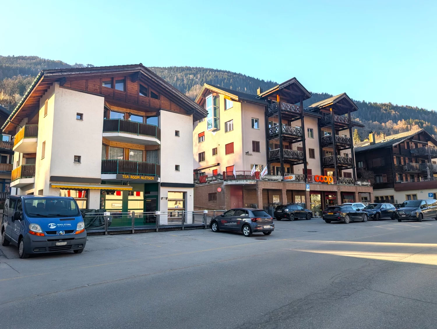 Die im Jahr 1989 erbaute Liegenschaft überzeugt durch ihre erstklassige, zentrale Lage direkt im Dorfzentrum an der Furkastrasse. Der Bahnhof und die Gondelbahn auf die Fiescheralp sind in nur 5 Gehminuten bequem erreichbar sind.