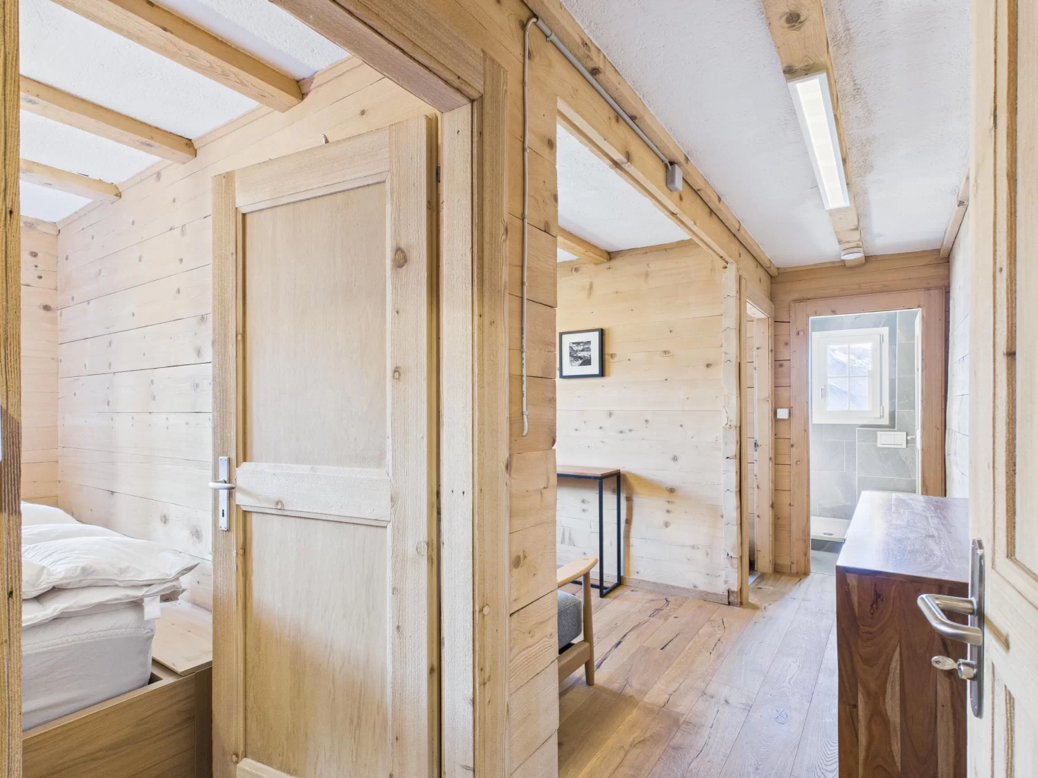 Im Rahmen der umfassenden Renovierung wurden die bestehenden Holzwände sandgestrahlt, wodurch ein heller, moderner Chalet-Charakter entstanden ist, der alpinen Charme mit zeitgemässem Wohngefühl verbindet. Beheizt wird die Wohnung über effiziente Elektroheizungen. Die dreifach verglasten Isolierfenster, welche bereits 2013 erneuert wurden, gewährleisten zudem einen hervorragenden Wärme- und Schallschutz.