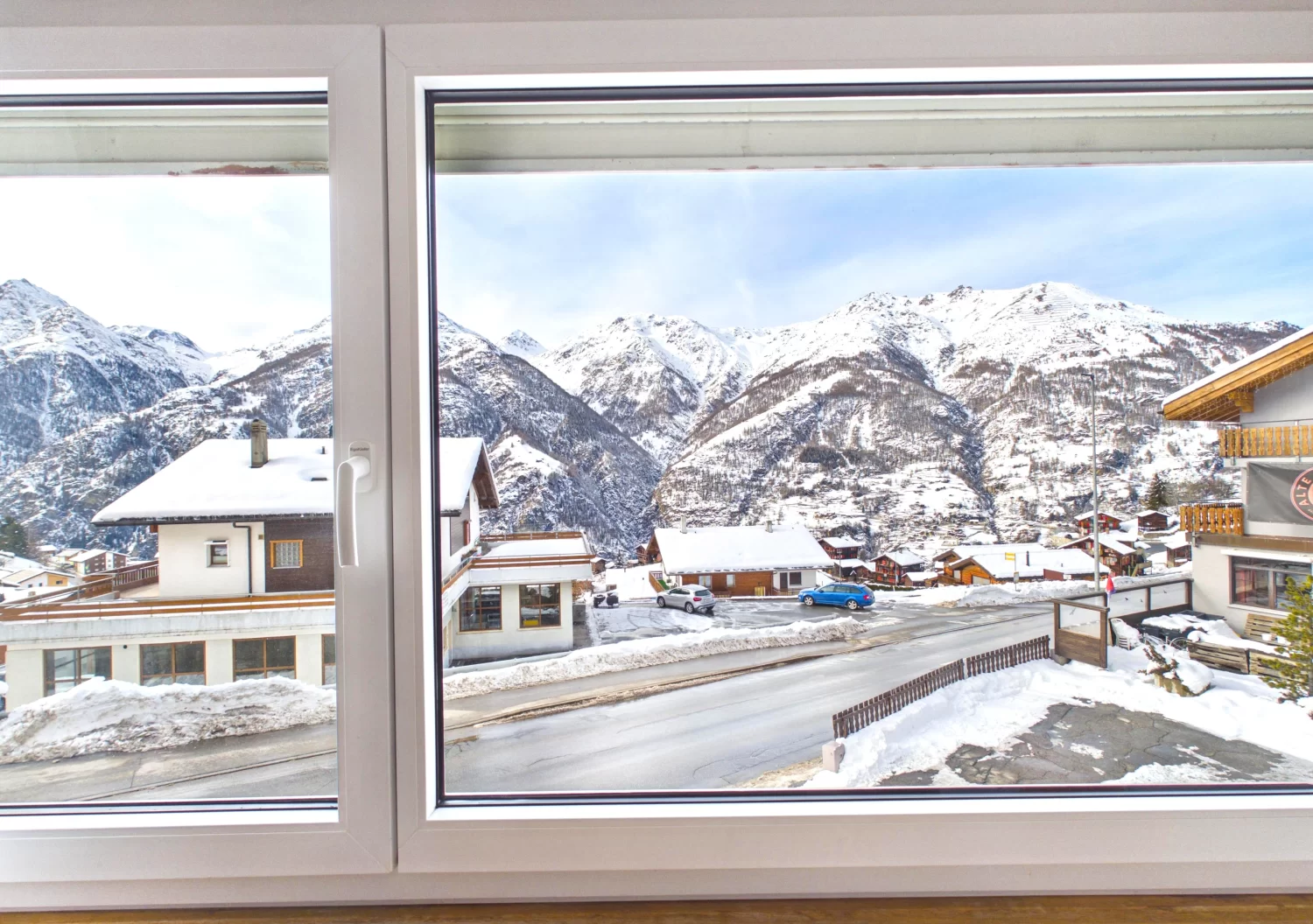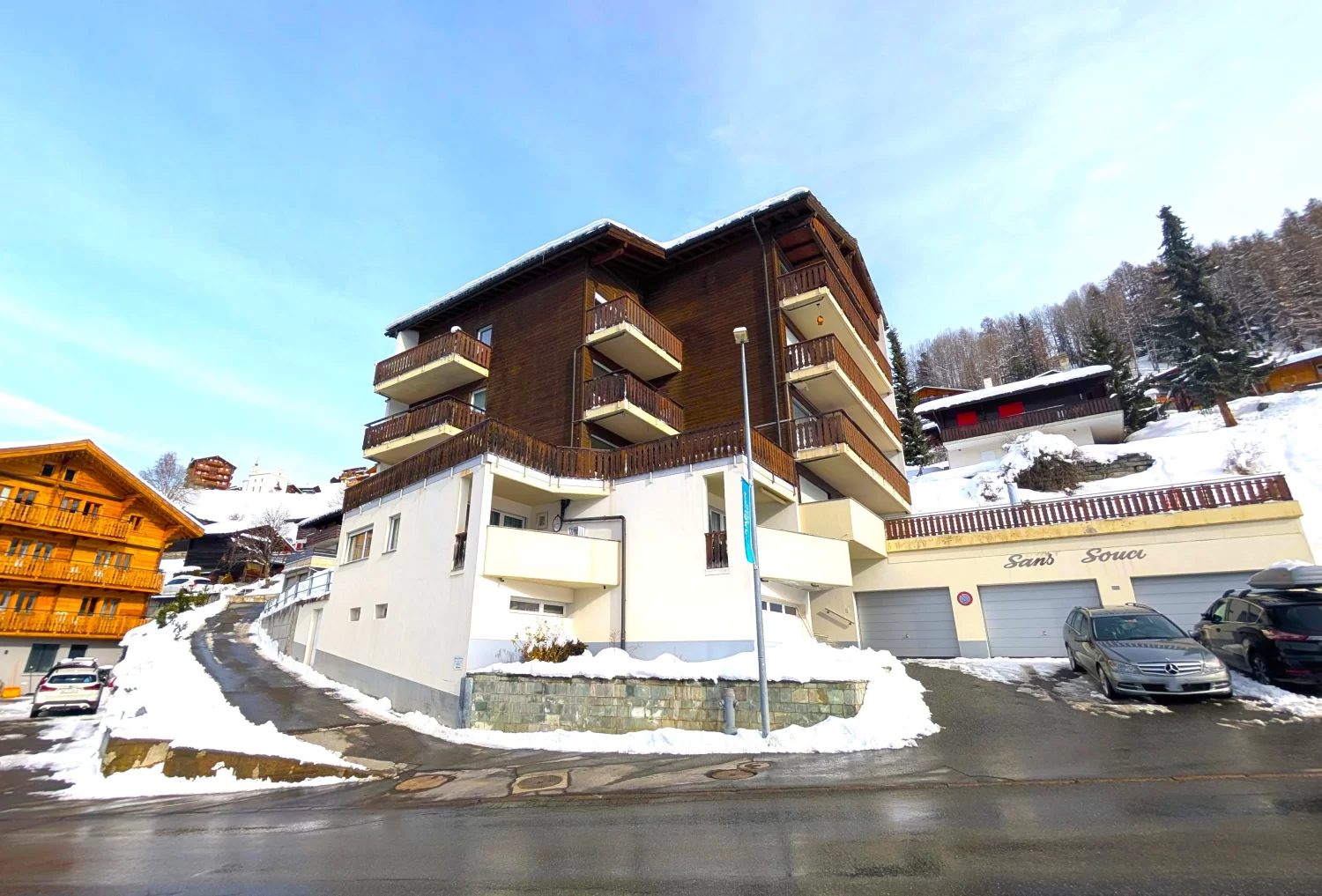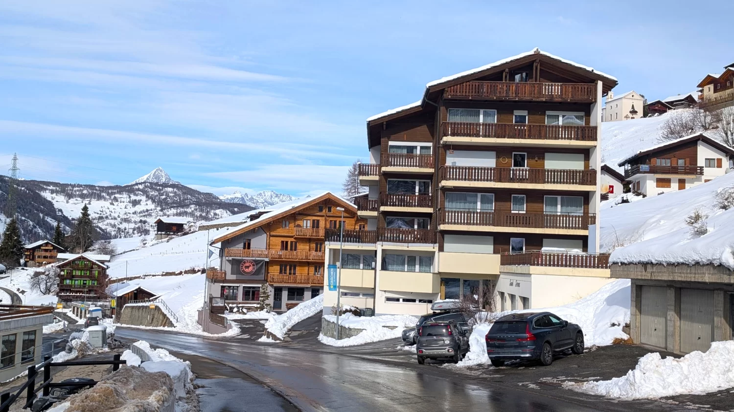 Die 3.5-Zimmer-Wohnung befindet sich im 1. Obergeschoss des gepflegten Mehrfamilienhauses «Sans Souci» an der Kantonsstrasse, in Grächen.