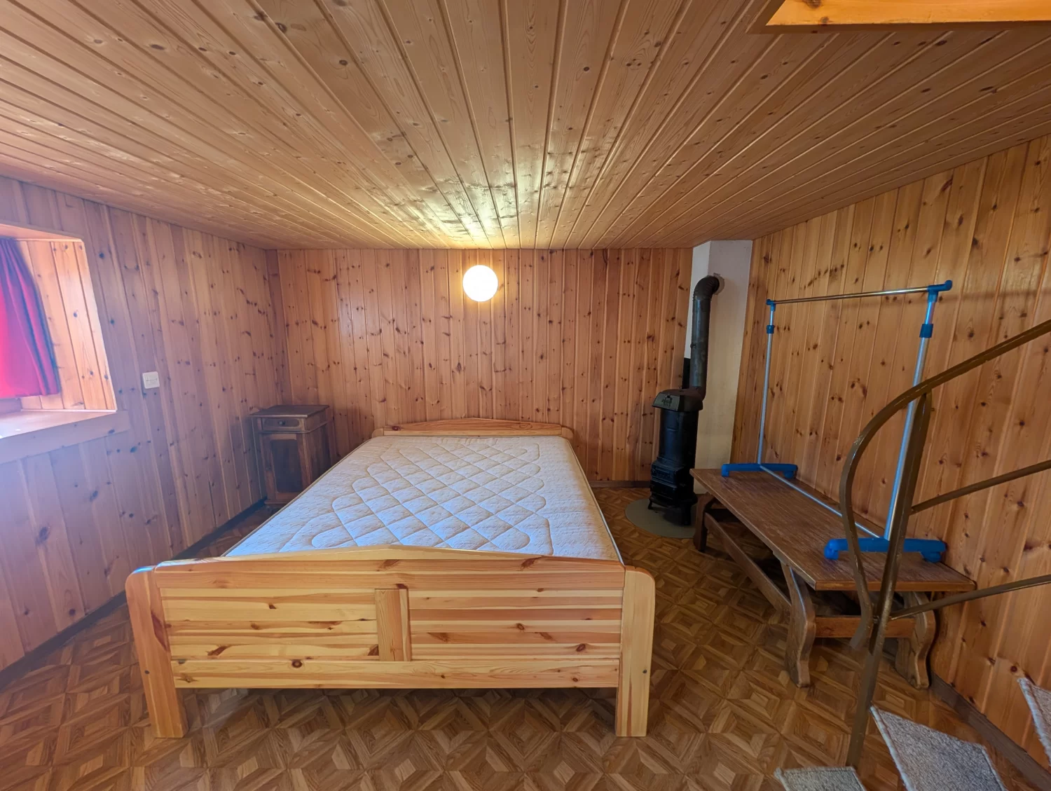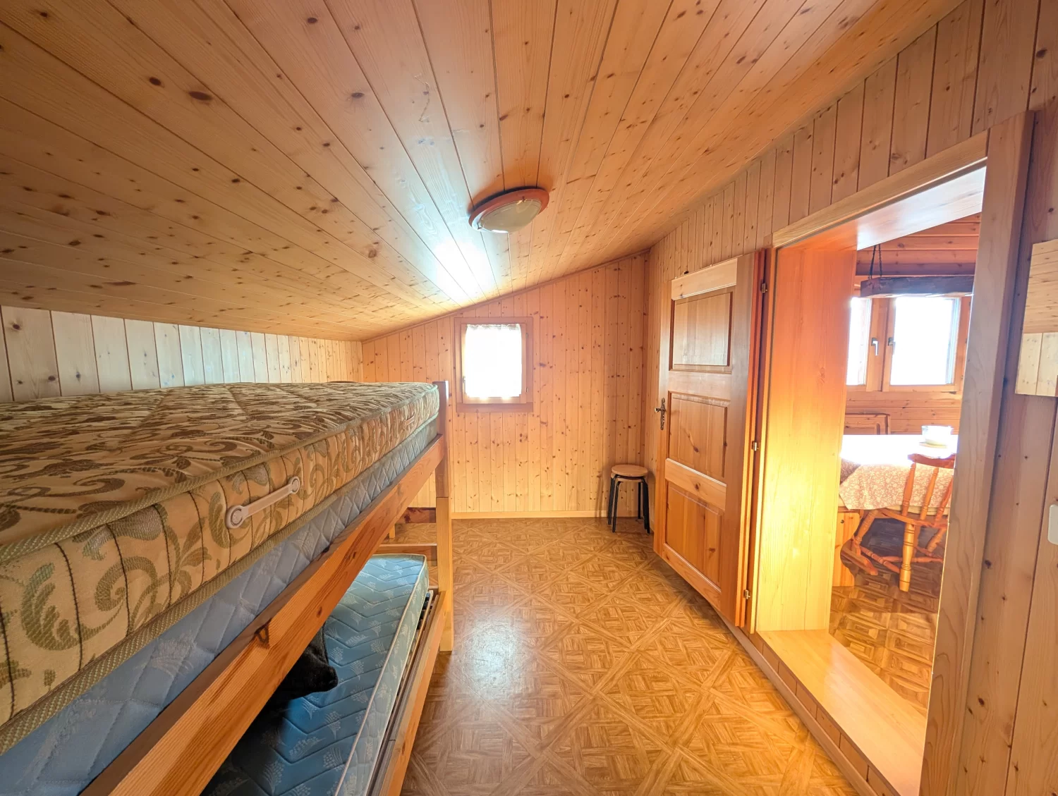 Das Gebäude verfügt über eine Nettowohnfläche von rund 47 m2, die geschickt auf zwei Ebenen verteilt ist. Im Obergeschoss erwartet Sie einen Eingangsbereich und eine Küche mit Holzofen. Der Holzofen ist ein echtes Highlight, der nicht nur wohltuende Wärme in den Raum bringt, sondern das Kochen zu einem einzigartigen Erlebnis macht. Ergänzt wird diese Ebene durch ein Schlafzimmer sowie ein Badezimmer mit Dusche, WC und Lavabo. Über die Wendeltreppe gelangt man ins Erdgeschoss, wo sich ein Schlafzimmer befindet, das mit einem weiteren Holzofen beheizt wird.