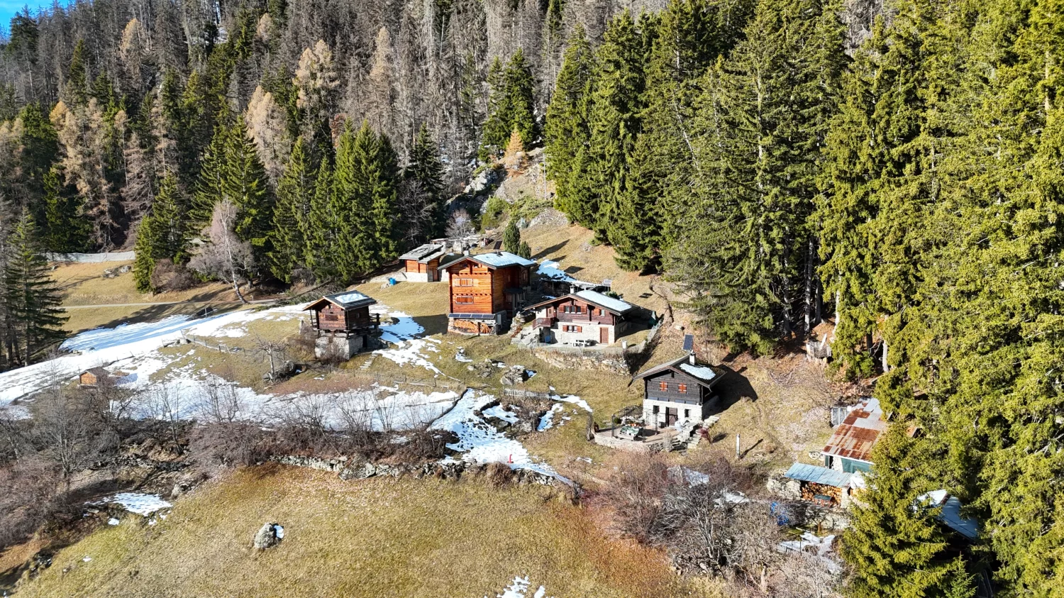 Das Maiensäss befindet sich im idyllischen Weiler Oberried und ist ganzjährig mit dem Auto erreichbar. Die Strasse wird, im Winter von der Gemeinde bis etwa 300 Meter vor dem Haus via Ried-Mörel geräumt.