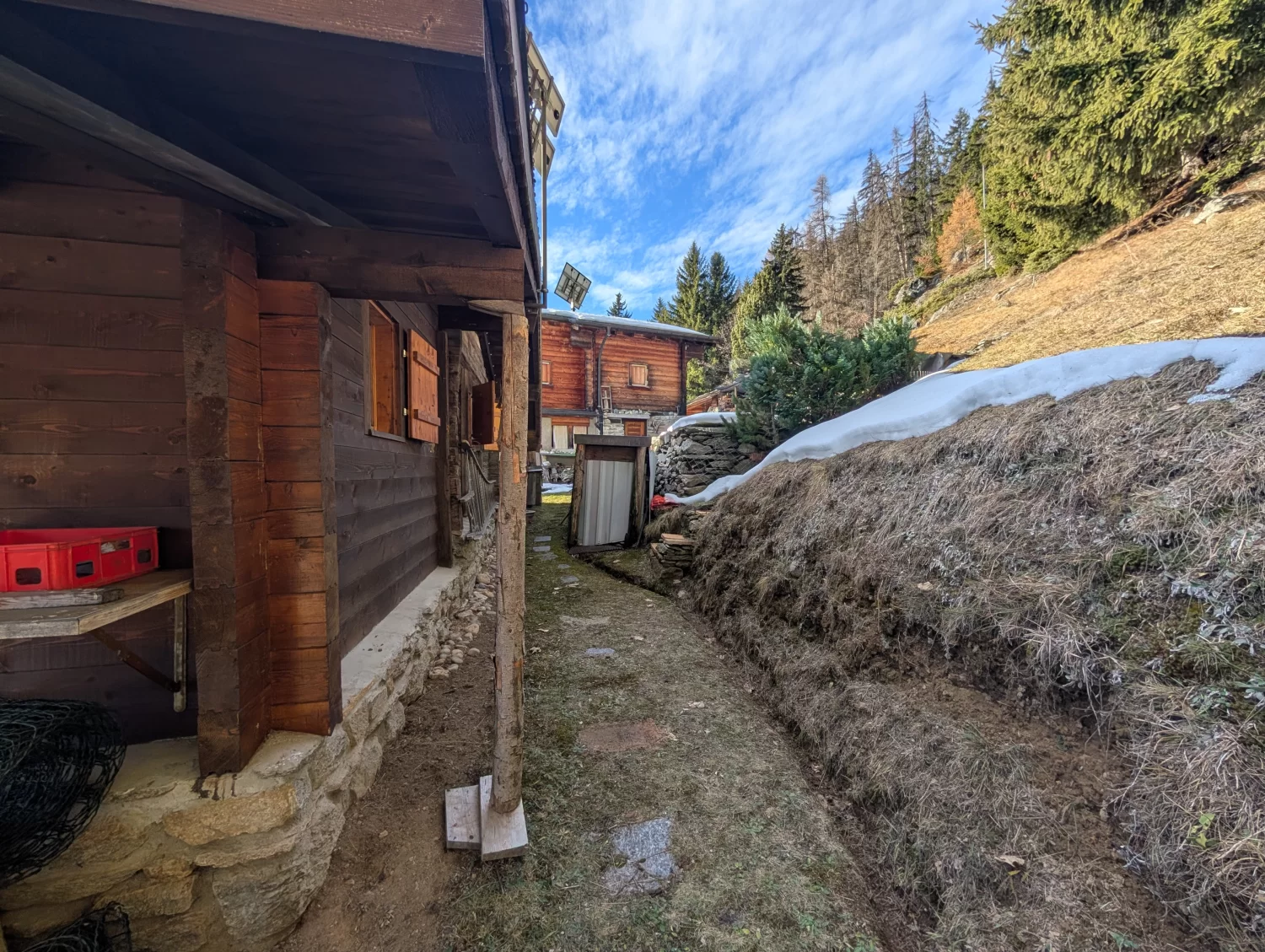 Es besteht die Möglichkeit, die Alphütte an den Stromanschluss anzubinden, der sich ca. 200 Meter entfernt befindet.