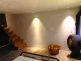 Das Gebäude ist mit einem dichten Eternitdach versehen und verfügt über eine Wohnfläche von rund 46 m2, die geschickt auf zwei Ebenen verteilt ist. Im Obergeschoss erwarten Sie eine kürzlich neu eingebaute Küche mit Cheminée, eine gemütliche Stube sowie eine einladende Galerie, die zusätzlichen Raum für Entspannung oder Gäste bietet.