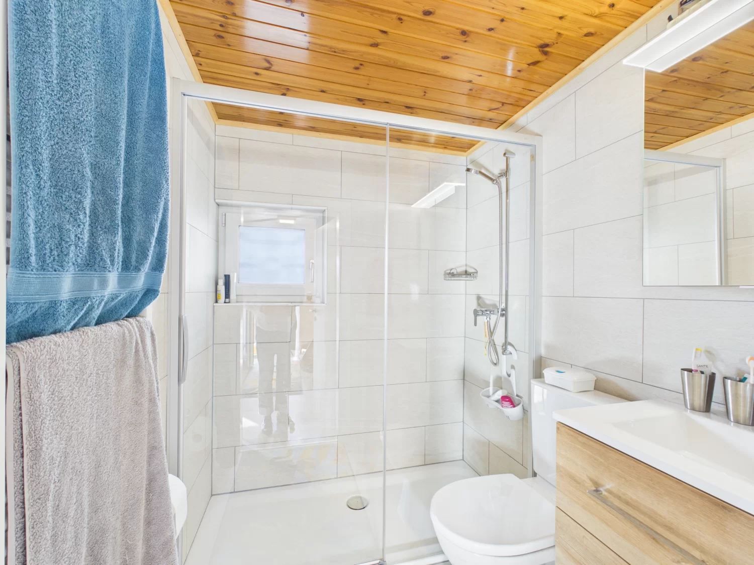 Ebenfalls auf dieser Etage befindet sich ein modernes Badezimmer mit begehbarer Dusche, Waschtisch und WC.
