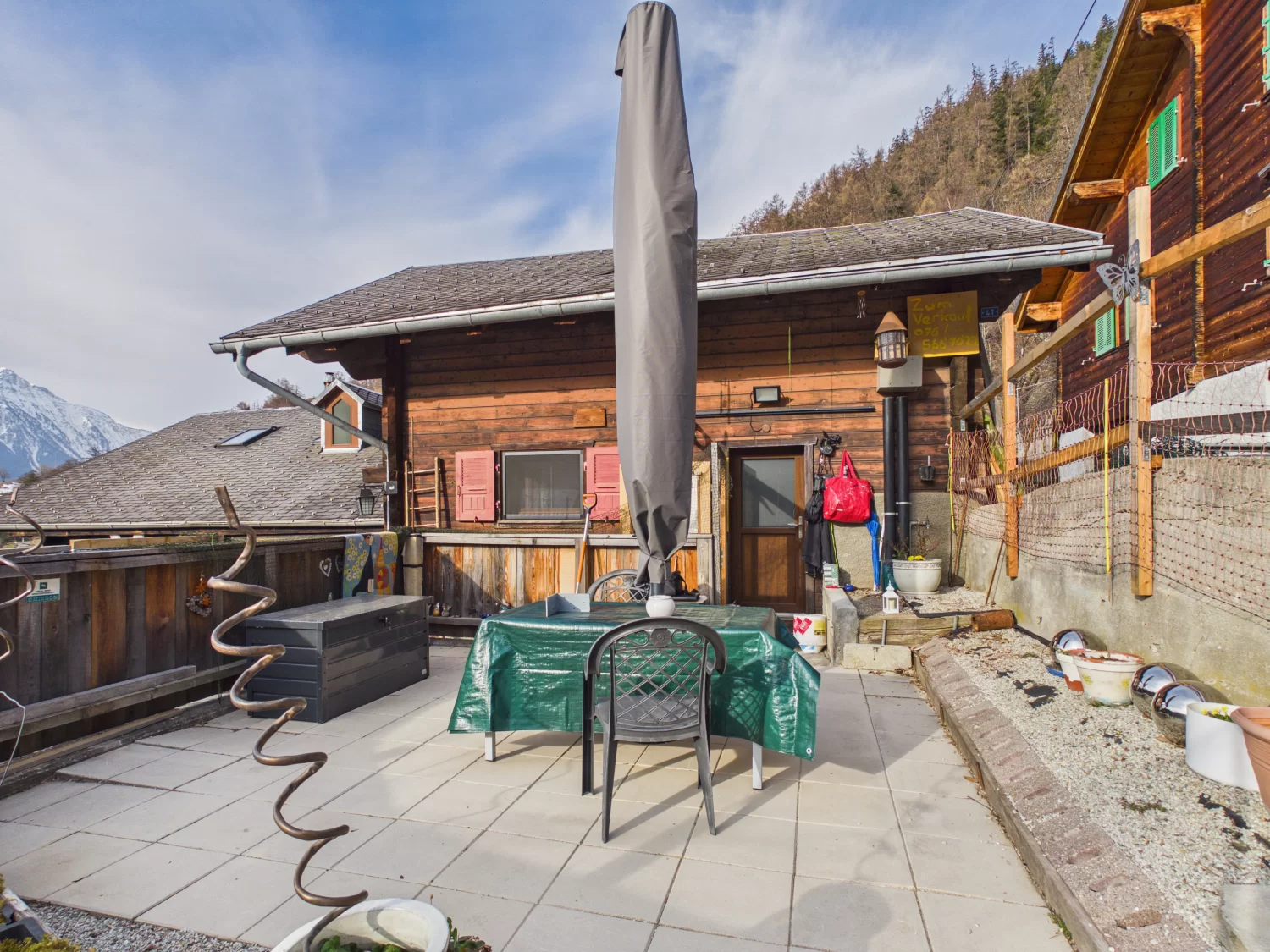 Auf der Ostseite lädt ein grosszügiger, gemütlicher Sitzplatz zum Verweilen ein – perfekt für ein Frühstück in der Morgensonne oder entspannte Abende mit Blick auf die Walliser Bergwelt.