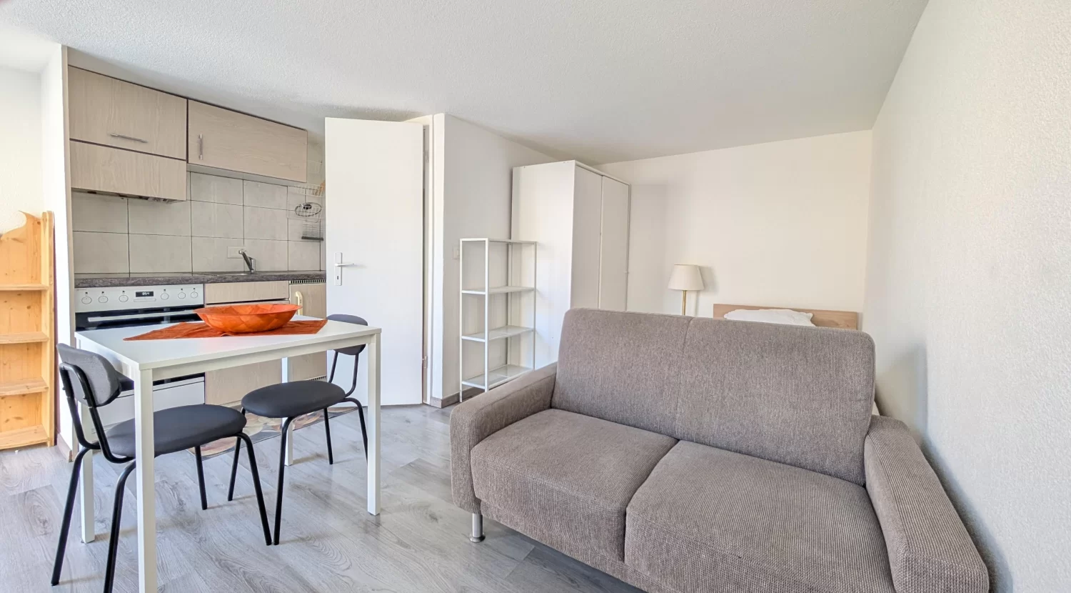 - Studio mit Küchenzeile und Badezimmer: Dusche/WC/Lavabo