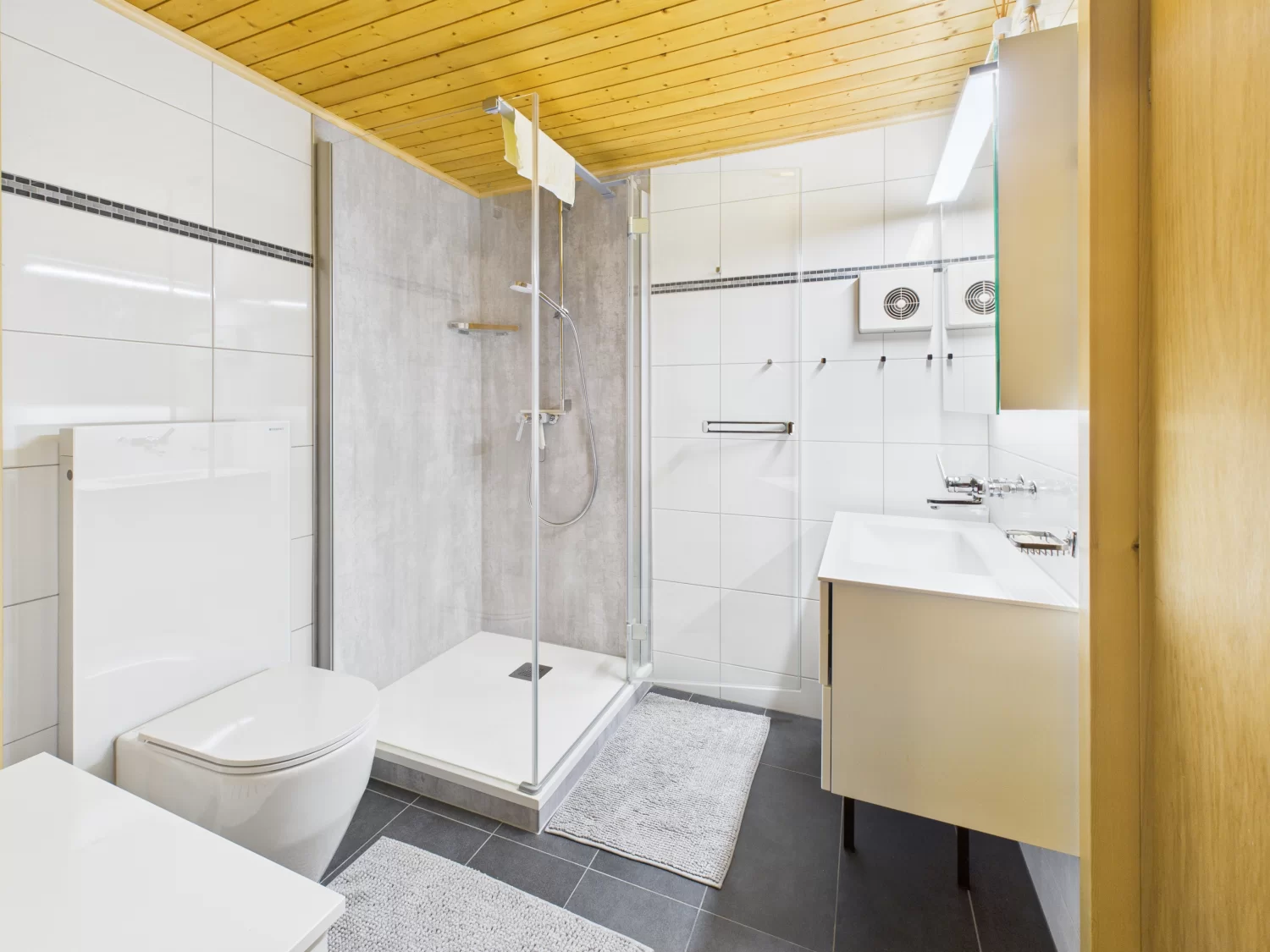- Badezimmer: Dusche, WC, Lavabo