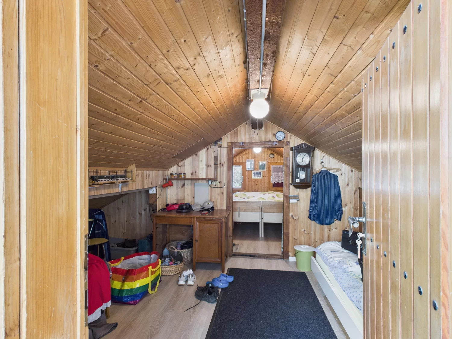 Über eine Holzaussentreppe gelangen Sie in das Unterdach, das zwei heimelige Schlafzimmer beherbergt – perfekt zum Ausruhen und Träumen.