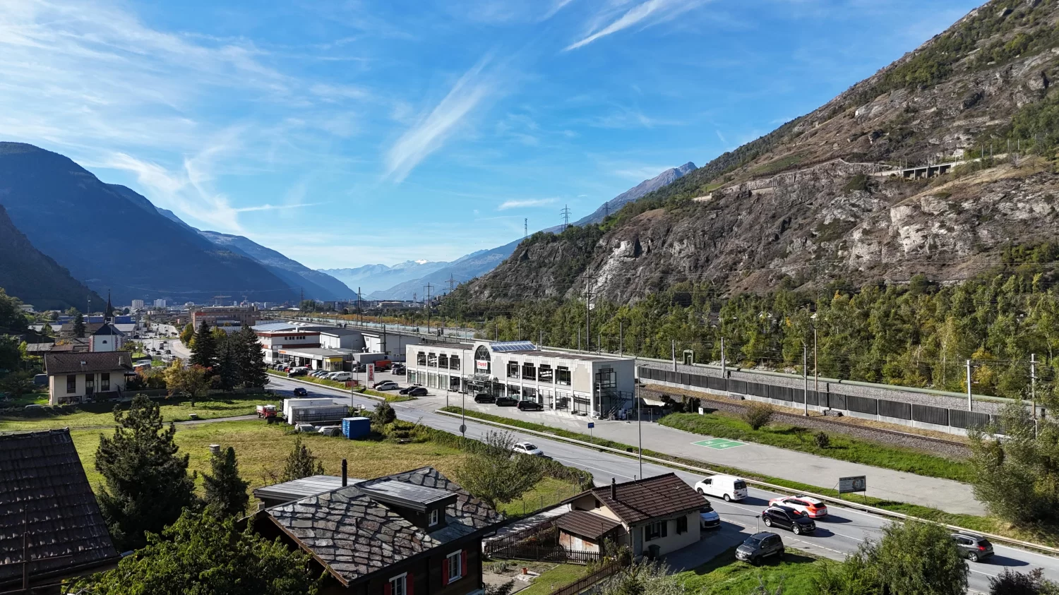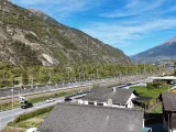 Das helle Wohnzimmer mit direktem Zugang zum Balkon öffnet den Blick auf die malerische Walliser Landschaft. Hier können Sie die Seele baumeln lassen, den Sonnenuntergang geniessen oder einfach den Alltag hinter sich lassen. Das Badezimmer verfügt über eine Dusche, ein Lavabo und ein separates WC, das durch eine Tür abgetrennt ist – funktional und komfortabel zugleich.