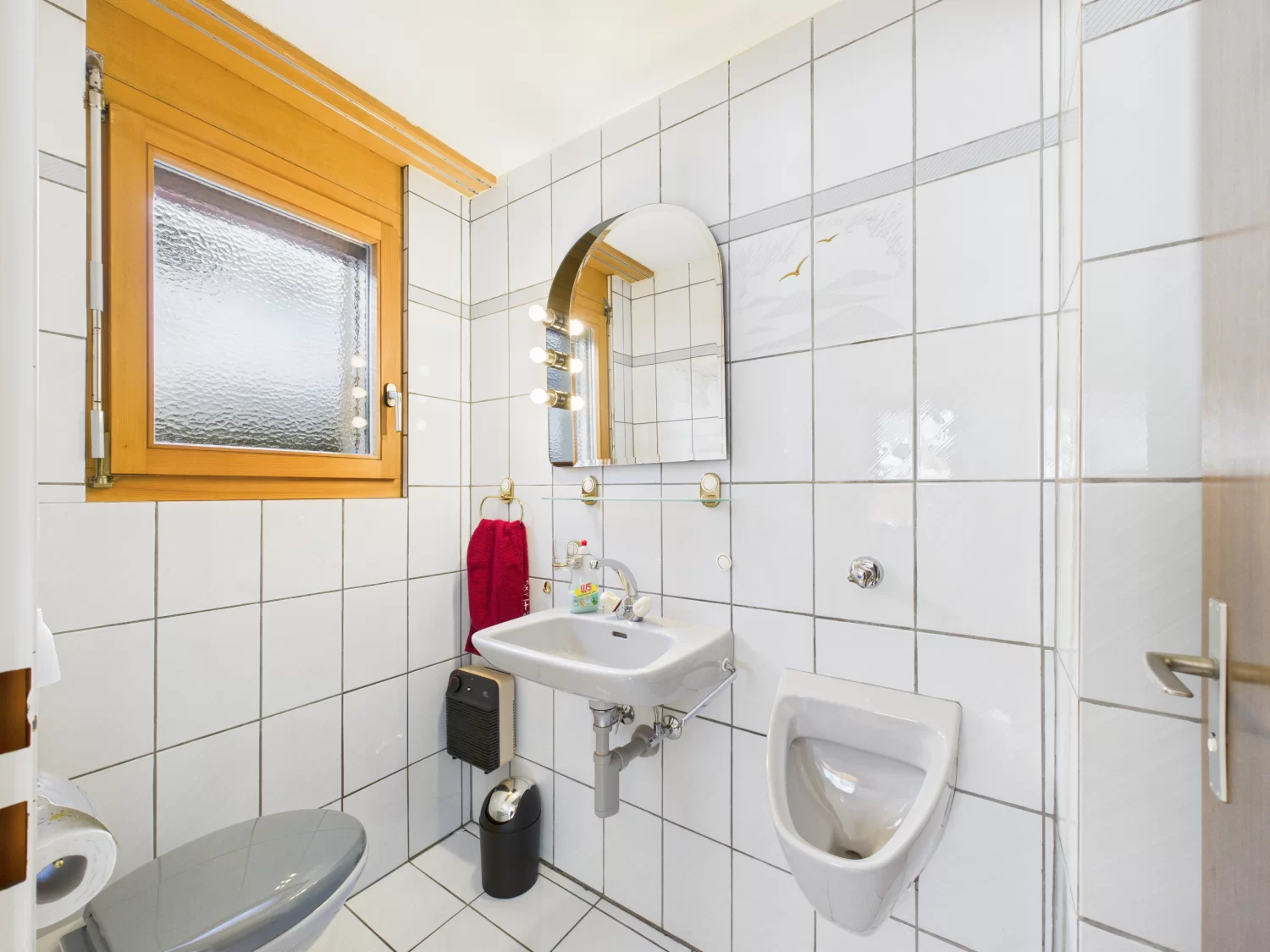 - Badezimmer mit Dusche, Waschtisch, WC & Pissoir