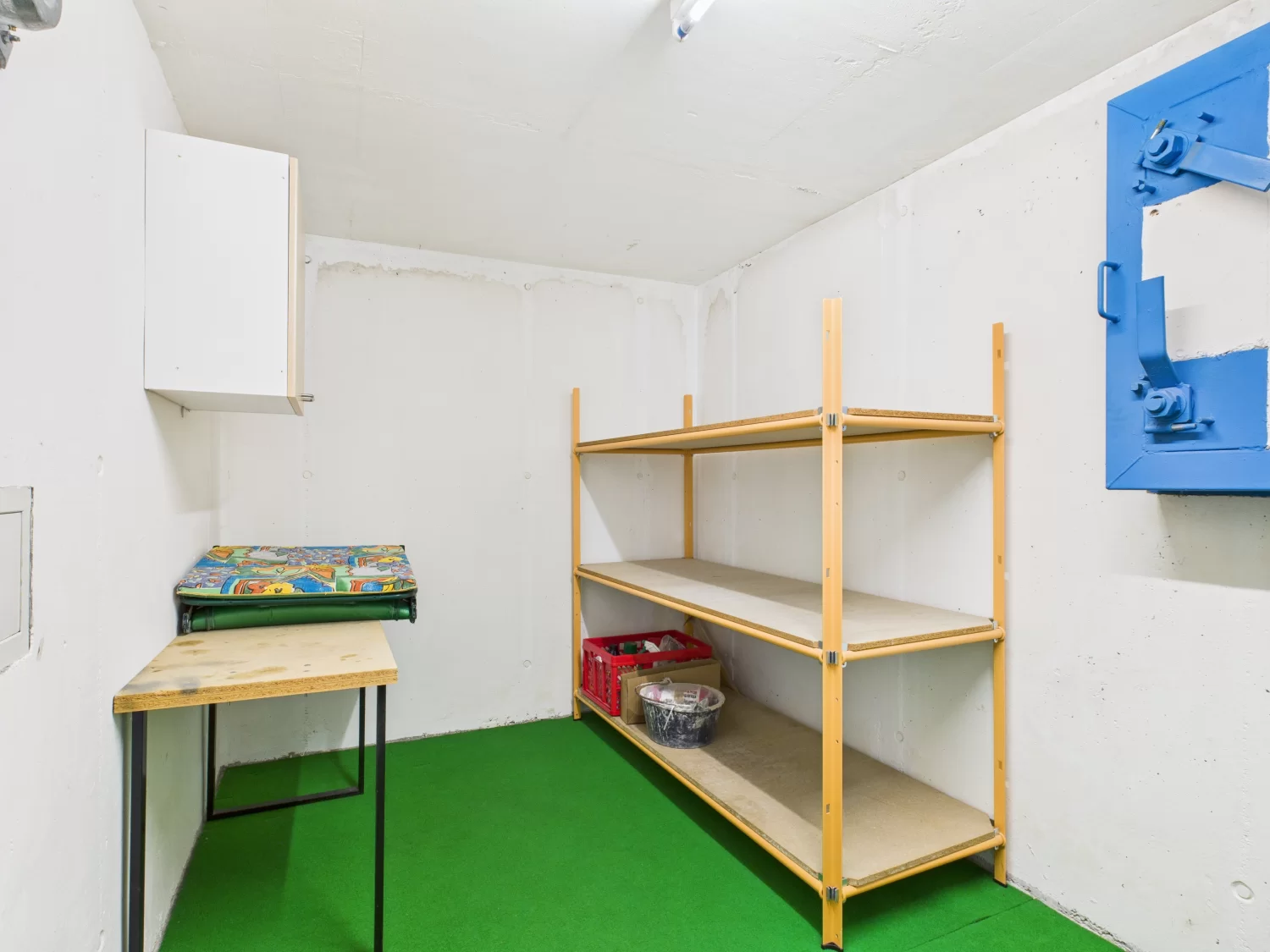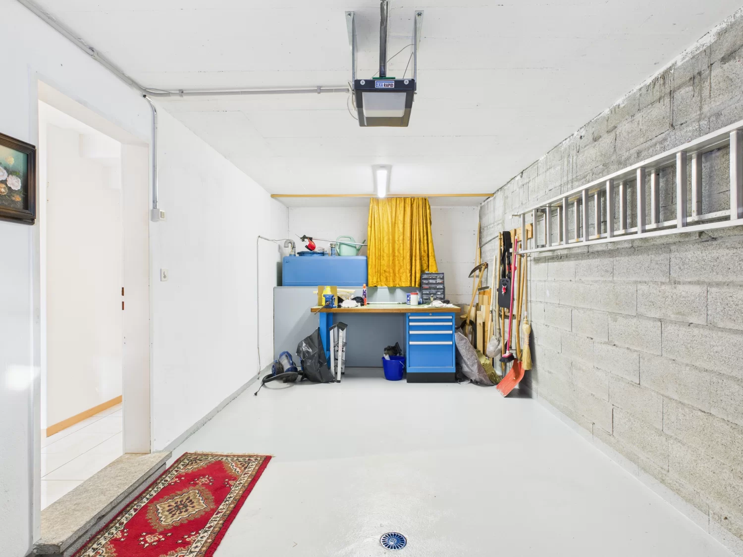 Das Erdgeschoss beherbergt zwei weitere Zimmer, ideal als Kinder-, Gäste- oder Arbeitszimmer, ein Badezimmer sowie einen Luftschutzkeller mit viel Stauraum, eine Waschküche/Technikraum und die grossräumige Garage.