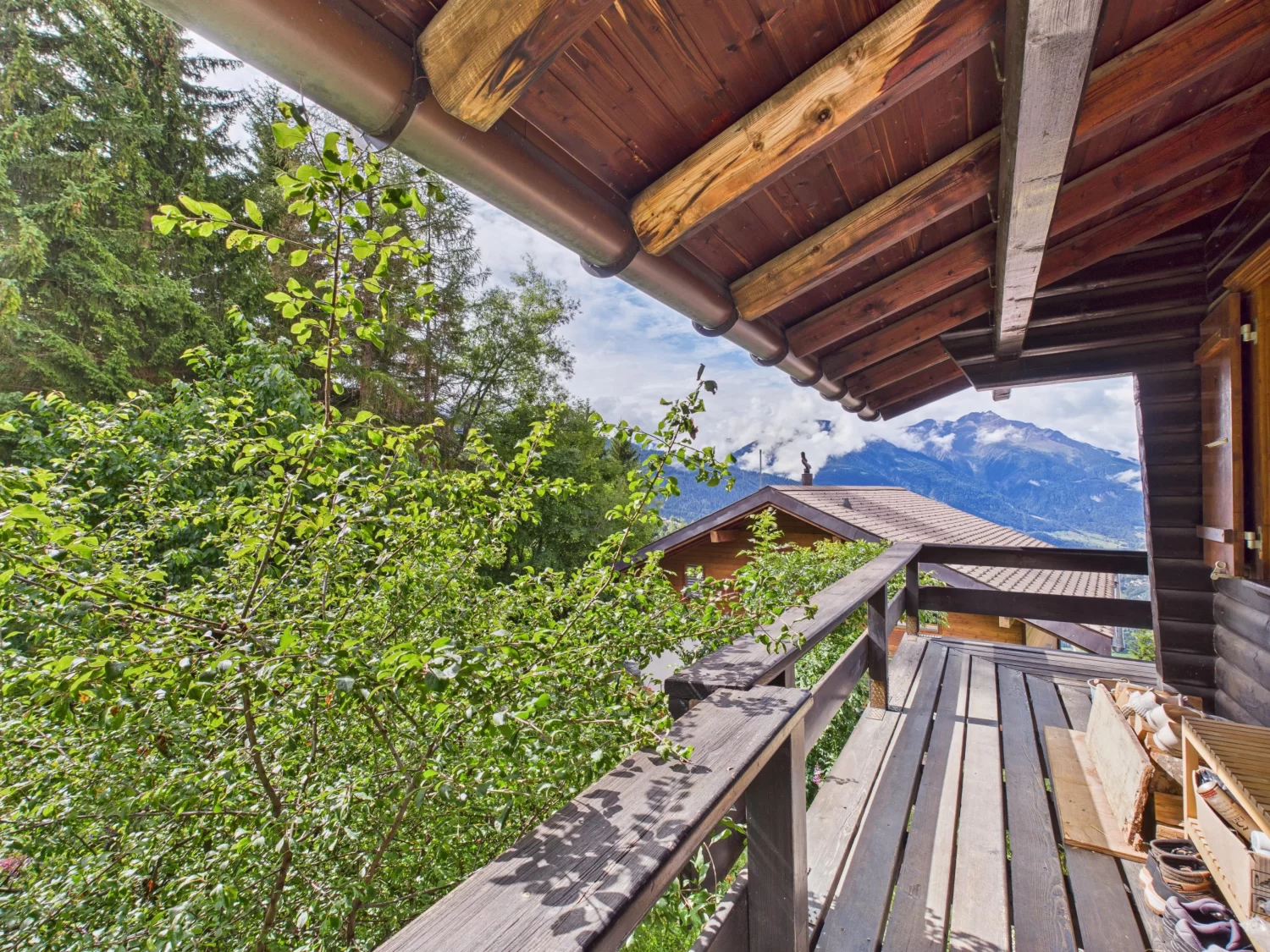 Der rundum angelegte Balkon, ist über eine Aussentreppe sowie über die Wohnung im Obergeschoss erreichbar. Hier bietet sich ein spektakulärer Blick auf das Rhonetal. Atemberaubende Sonnenuntergänge sind garantiert!