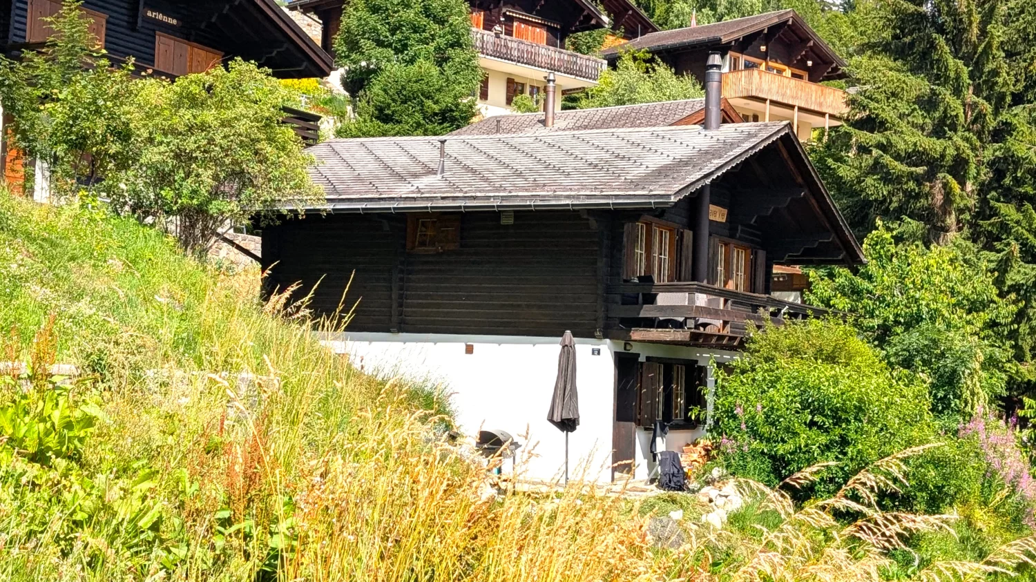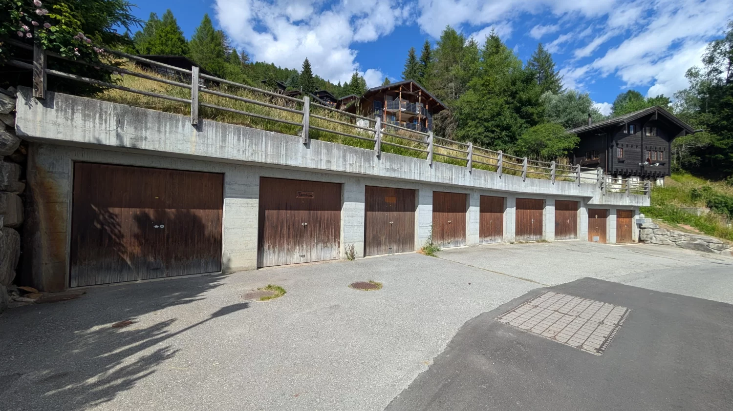 Das heimelige, von der Sonne gegerbte Chalet mit Baujahr 1978 liegt etwas oberhalb der Riederstrasse im Orte genannt «Ried» und ist über einen Weg von der Strasse aus oder über einen Weg am Ende der Strasse vom Wendehammer her erreichbar. Die Garage auf der Parzellen-Nr. 580 (vgl. Situationsplan) ist direkt an der Riederstrasse gelegen und ca. 5 Gehminuten vom Haus entfernt.