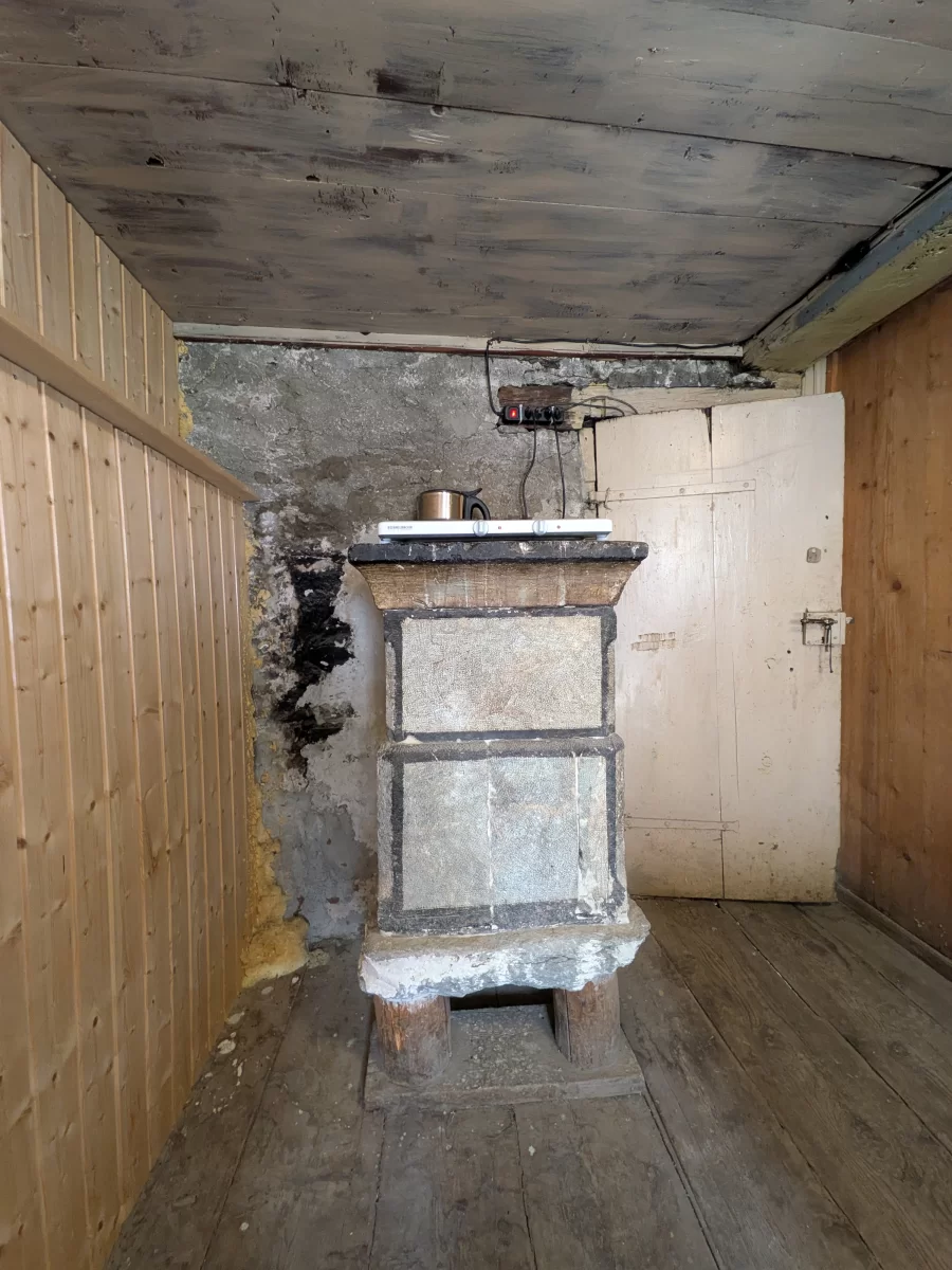 - Wohnstube mit Giltsteinofen und Kochgelegenheit