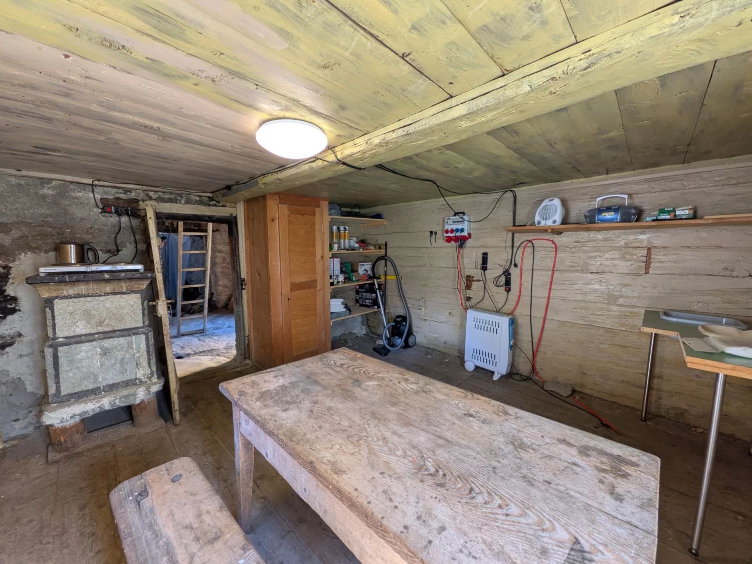 Das Rustico überzeugt durch seinen authentischen Charakter: massive Natursteinmauern, ein traditionelles Steinplattendach auf dem Wohngebäude sowie einem Blechdach auf der ehemaligen Stall-Scheune. Die schlichte, zweckmässige Bauweise erzählen von einer bodenständigen Vergangenheit. Der Ausbau ist sehr einfach gehalten und bietet entsprechend viel Raum für eigene Vorstellungen. Hier steht nicht Luxus im Vordergrund, sondern Potenzial, Atmosphäre und die Möglichkeit, mit Eigenleistung etwas Besonderes zu schaffen.