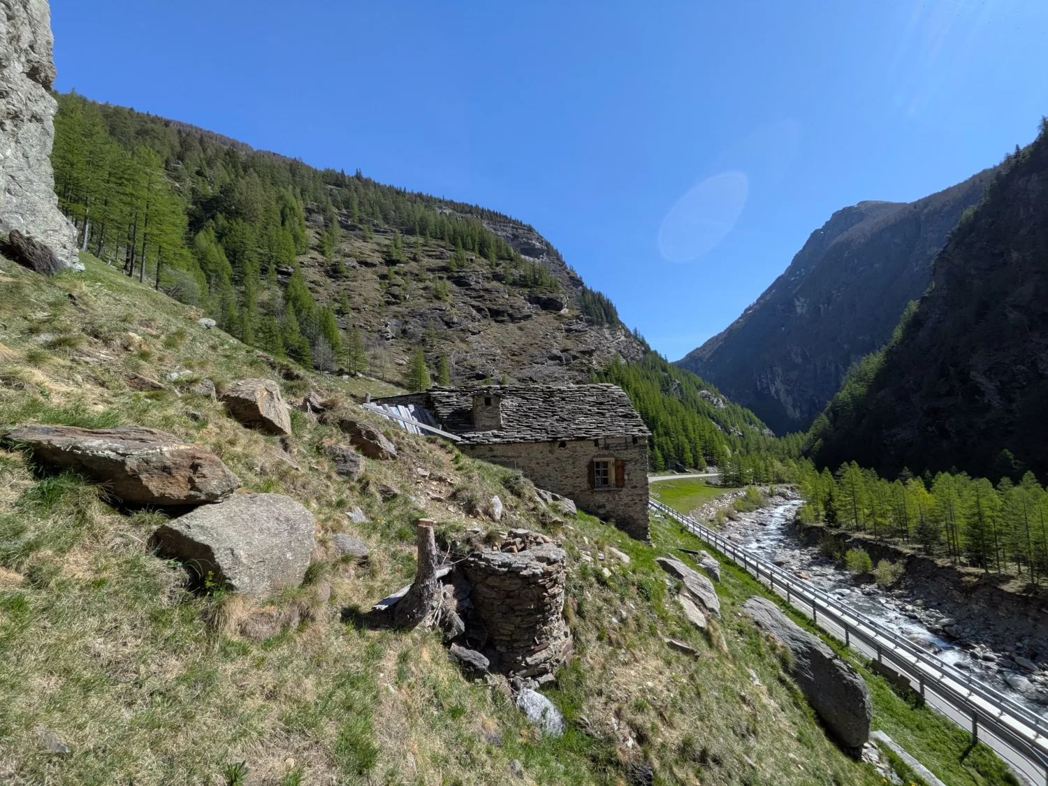 Beim «Gabi» im Simplongebiet, eingebettet in eine eindrucksvolle Fels- und Naturlandschaft, wartet dieses traditionelle Rustico-Steinhaus (ca. 1'200 m ü. M.) auf neue Eigentümer mit Ideen, handwerklichem Geschick und Freude am Ursprünglichen. Die Lage nahe der Simplonpassstrasse verbindet alpine Ruhe mit guter Erreichbarkeit und macht das Objekt zu einer spannenden Gelegenheit für alle, die ein einfaches Rückzugsort-Projekt in den Bergen suchen. Das Häuschen mit angrenzender Stall-Scheune steht etwas erhöht an der Simplonpassstrasse. Es besteht die Möglichkeit mit einem Fahrzeug bis an das Grundstück zu fahren (Im Grundbuch eingetragenes Durchfahrtsrecht) und zu parkieren.