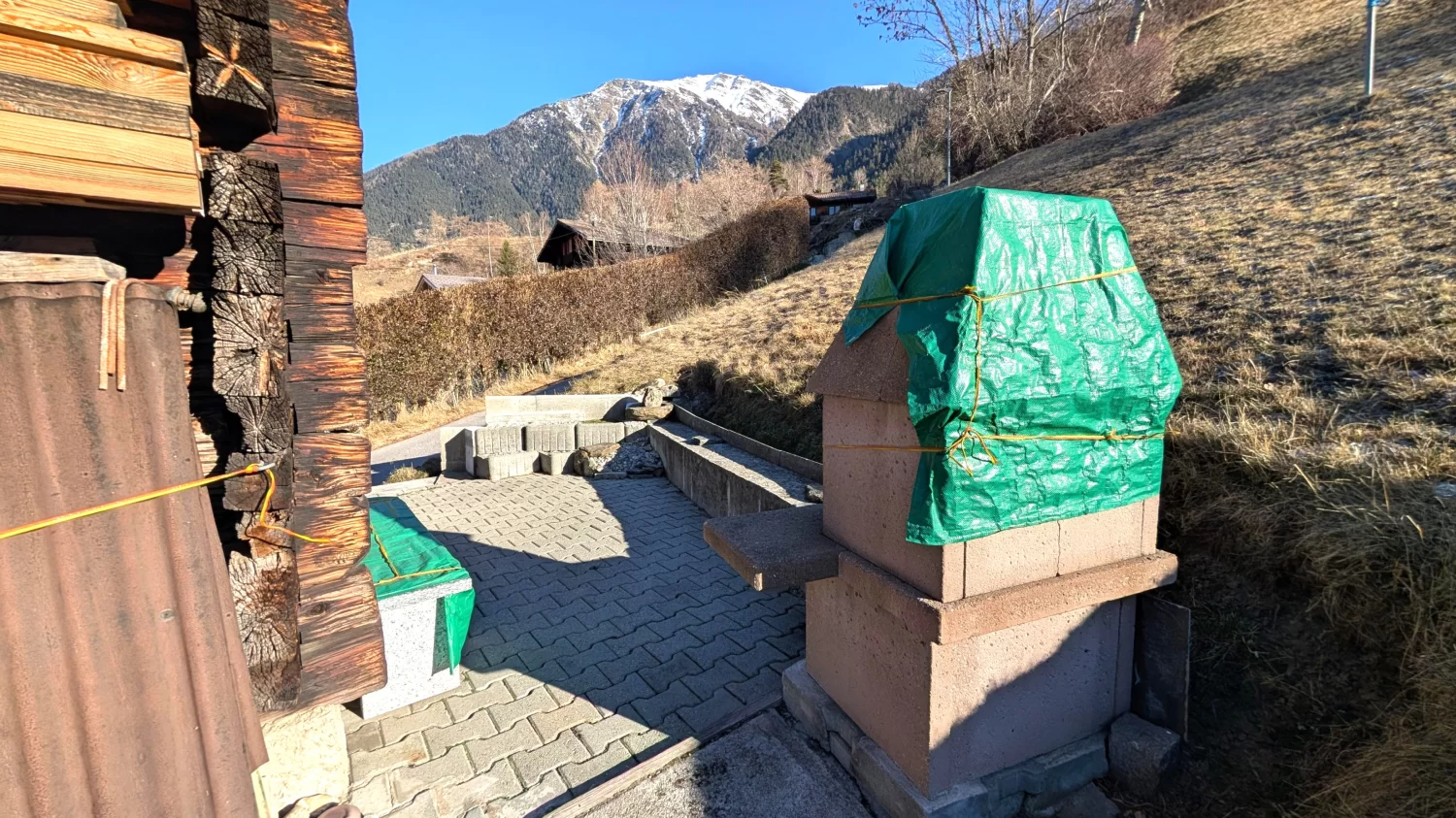 Das Häuschen steht auf einem Grundstück mit 61 m2 Fläche auf ca. 950 m ü. M oberhalb der Kirche von Ried-Brig an der Gassa.